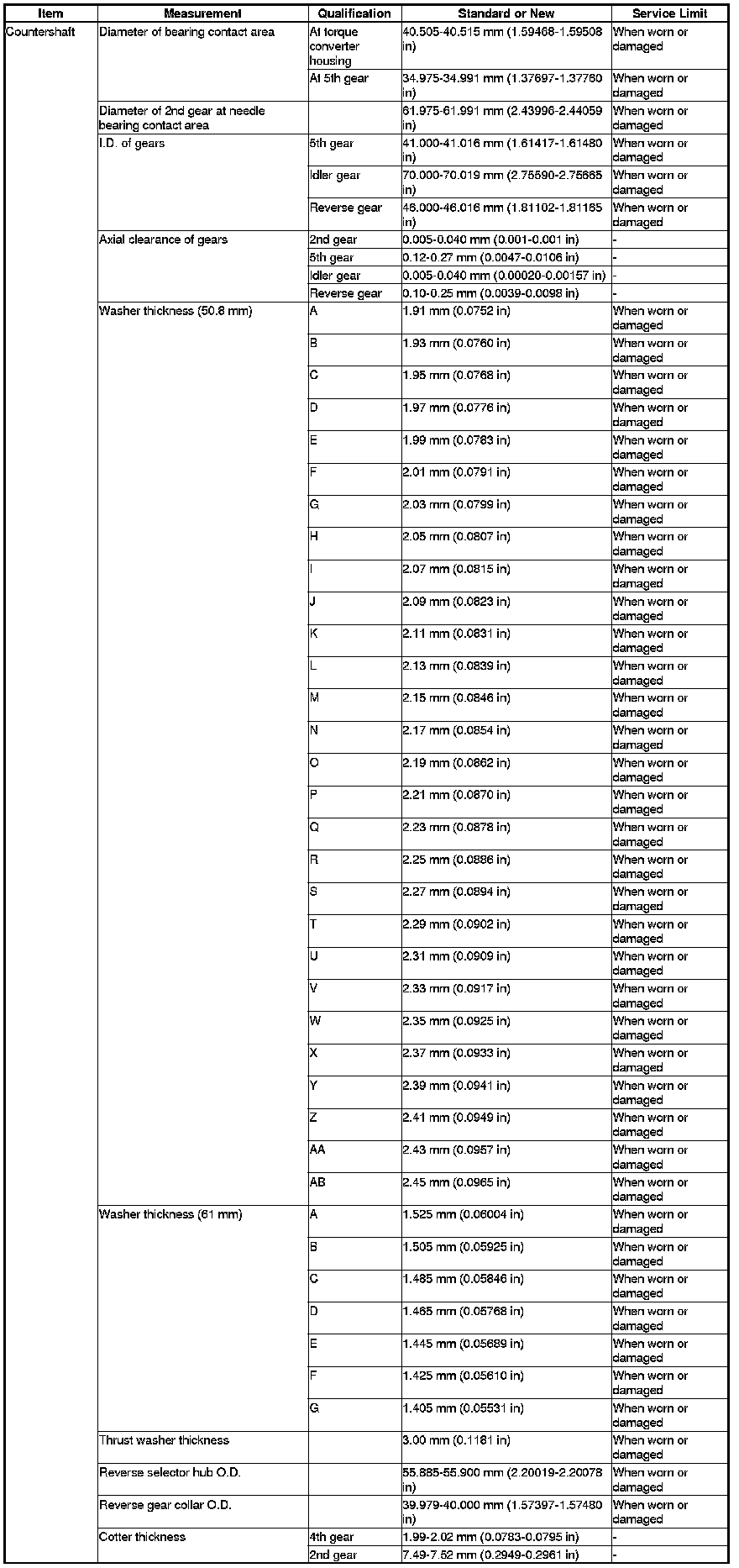 Countershaft Specification(s)