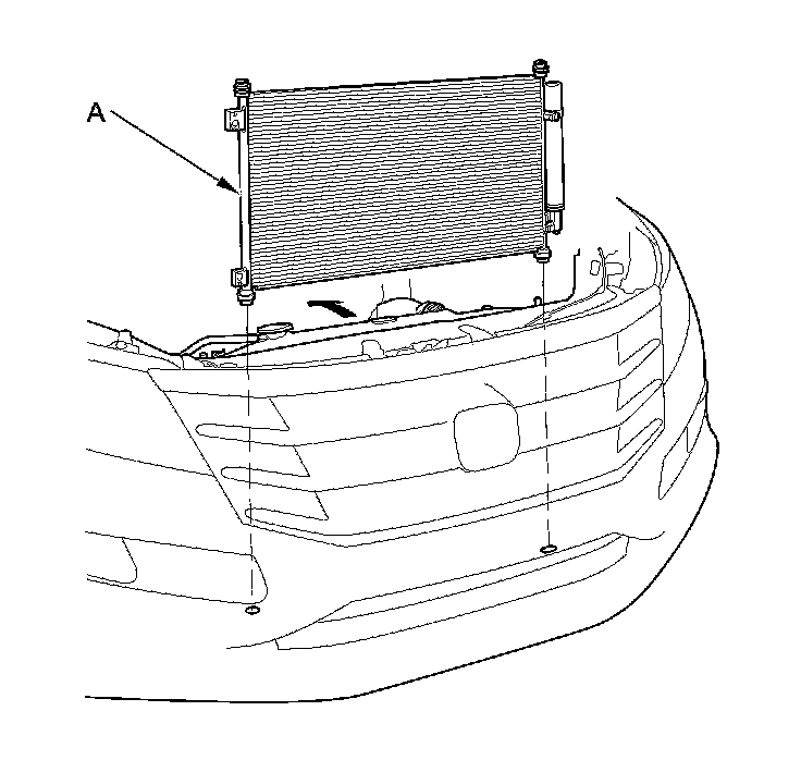 - Be careful not to damage the radiator or the A/C condenser fins when installing the A/C condenser.
