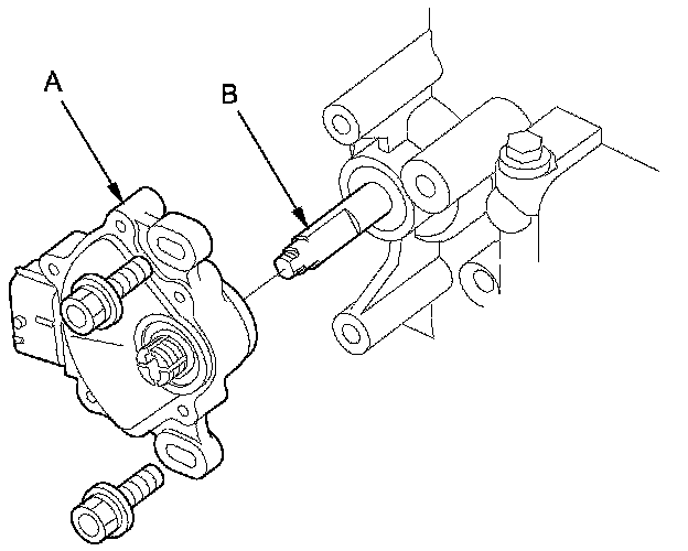 13. Install the transmission range switch (A) gently over the selector control shaft (B), and install the bolts loosely.