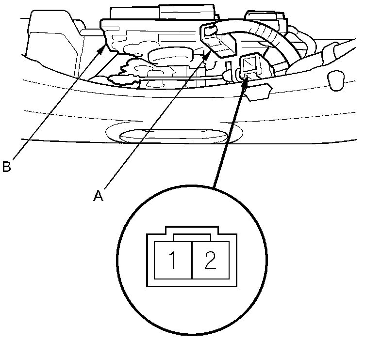 3. Disconnect the 2P connector (A) from the tailgate latch assembly (B).