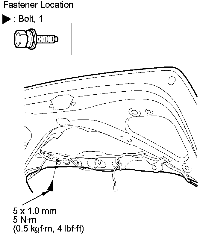 2. From inside the tailgate, remove the bolt securing the rear license trim.