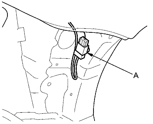 6. Disconnect and detach the antenna lead connector (A) from the right C-pillar area.