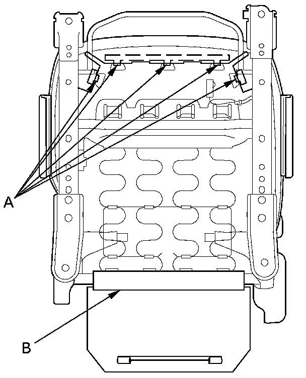 5. From under seat cushion, release the hook strips (A, B) from the seat cushion frame.