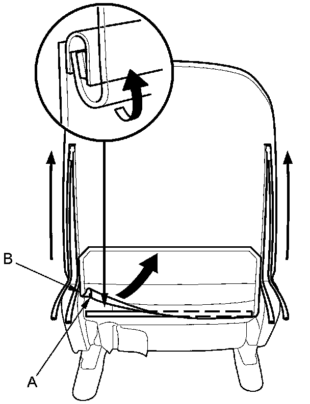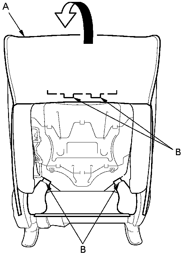 5. From behind the seat-back, release the hook strip (A), and unzip the seat-cover (B).