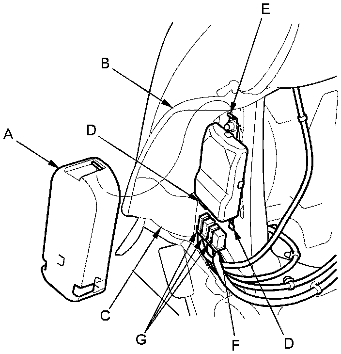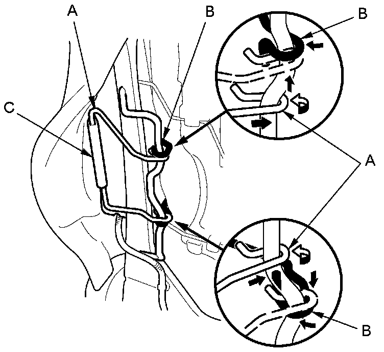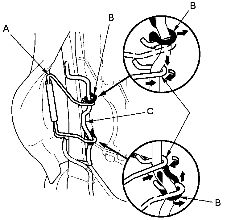 - Reinstall airbag attachment wires A and B securely.