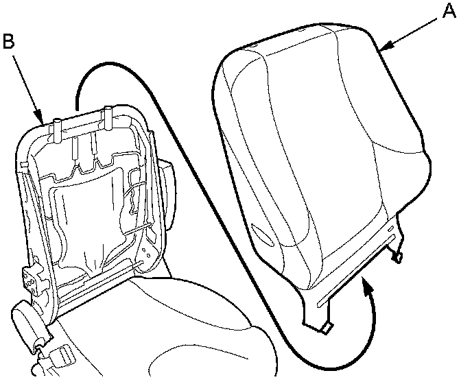 14. Remove the seat-back cover/pad (A) from the seat-back frame (B).