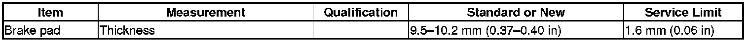 Brake Pad: Specifications