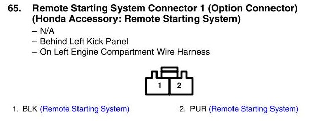 View 65 - Remote Starting System Connector 1 (Option Connector) Connector View (Honda Accessory: Remote Starting System)
