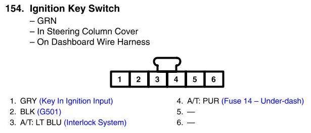 Ignition Key Switch Connector View