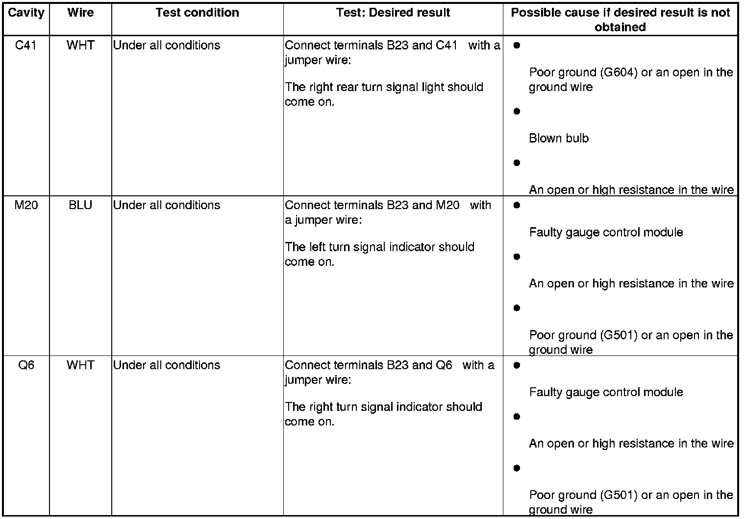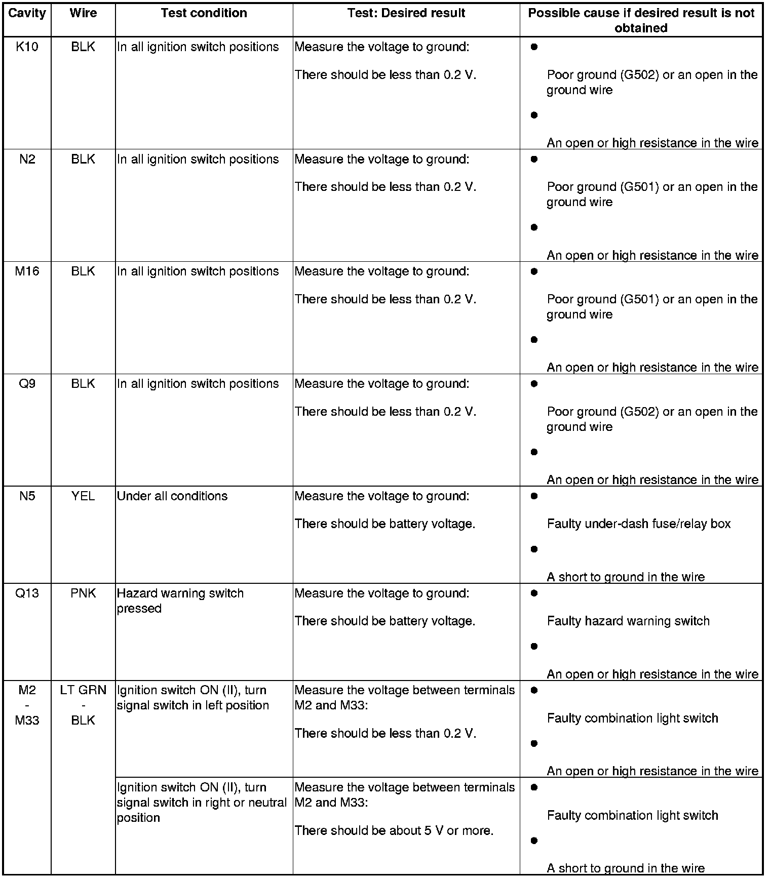 5. Reconnect the connectors to the driver's under-dash fuse/relay box, and do these input tests at the following connectors.