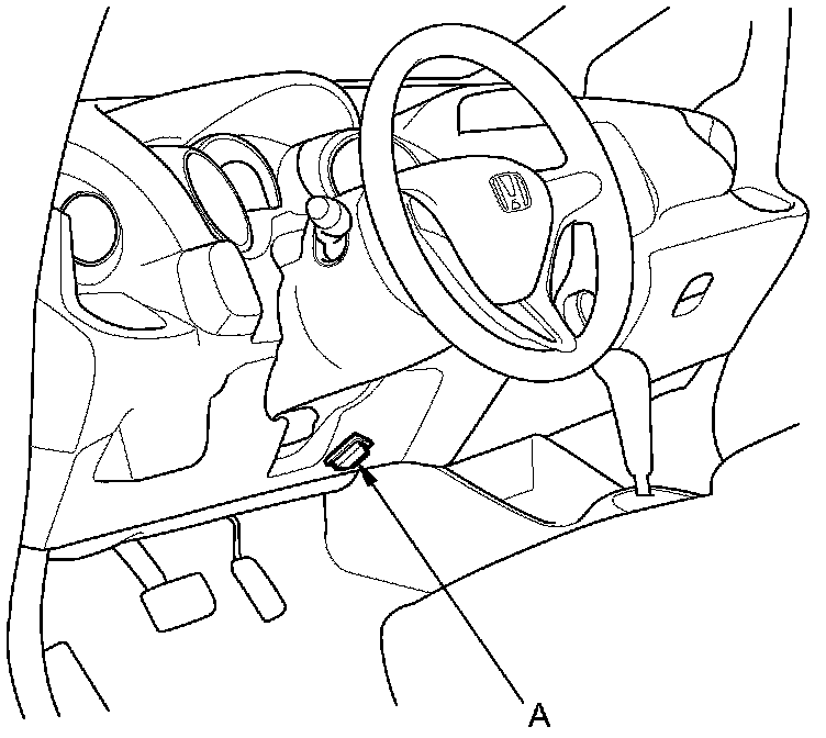 6. Remove the dipstick, and refill the transmission with the recommended fluid into the dipstick guide opening (A). Always use Honda ATF DW-1 (ATF-Z1 has been replaced with ATF DW-1, Honda Service News Nov 2010) Automatic Transmission Fluid (ATF). Using a non-Honda ATF can affect shift quality.