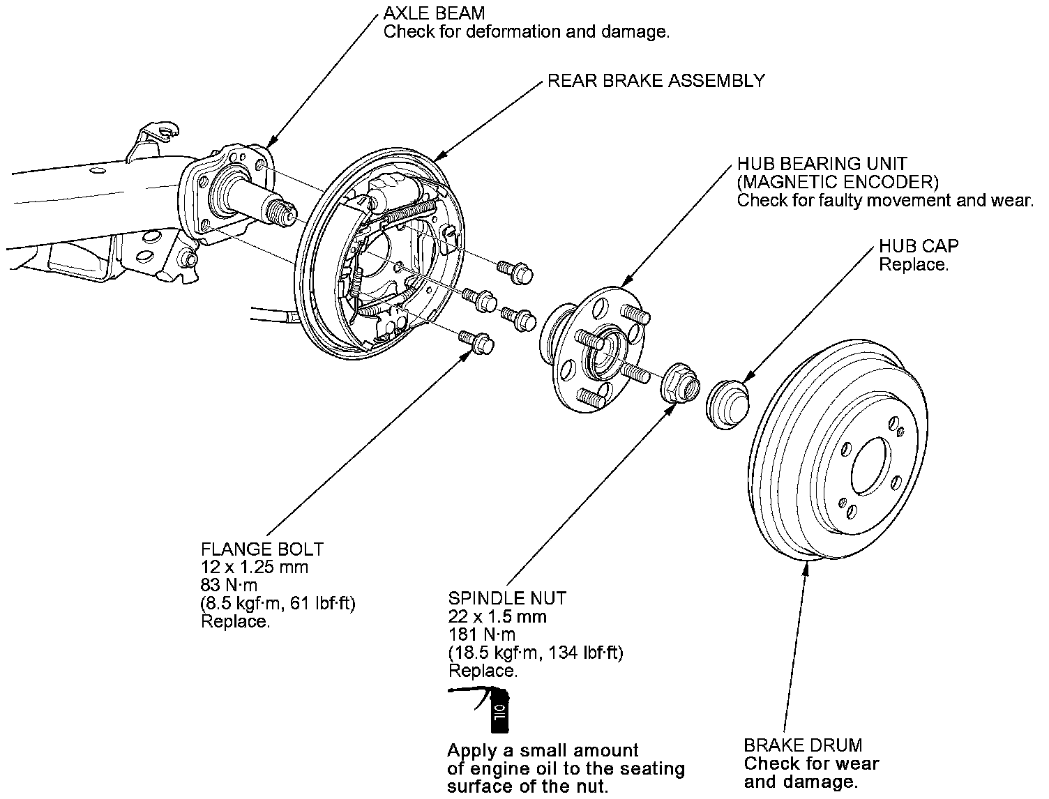 - Use a new spindle nut and hub cap on reassembly.