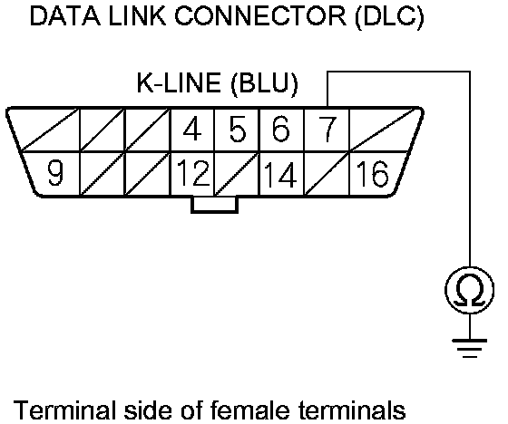 21. Check for continuity between DLC terminal No. 7 and body ground.
