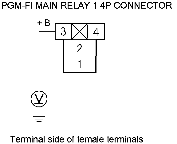 68. Measure the voltage between PGM-FI main relay 1 4P connector terminal No. 2 and body ground.