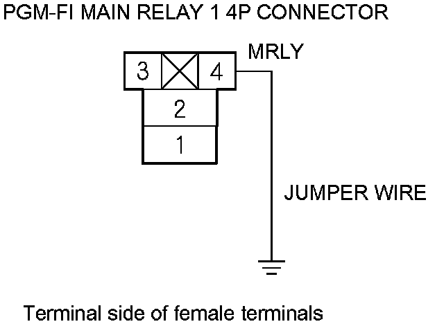 64. Connect PGM-FI main relay 1 4P connector terminal No. 4 to body ground with a jumper wire.
