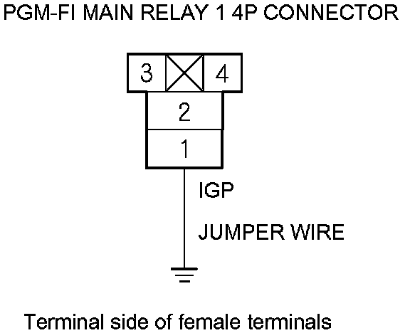 69. Connect PGM-FI main relay 1 4P connector terminal No. 1 to body ground with a jumper wire.