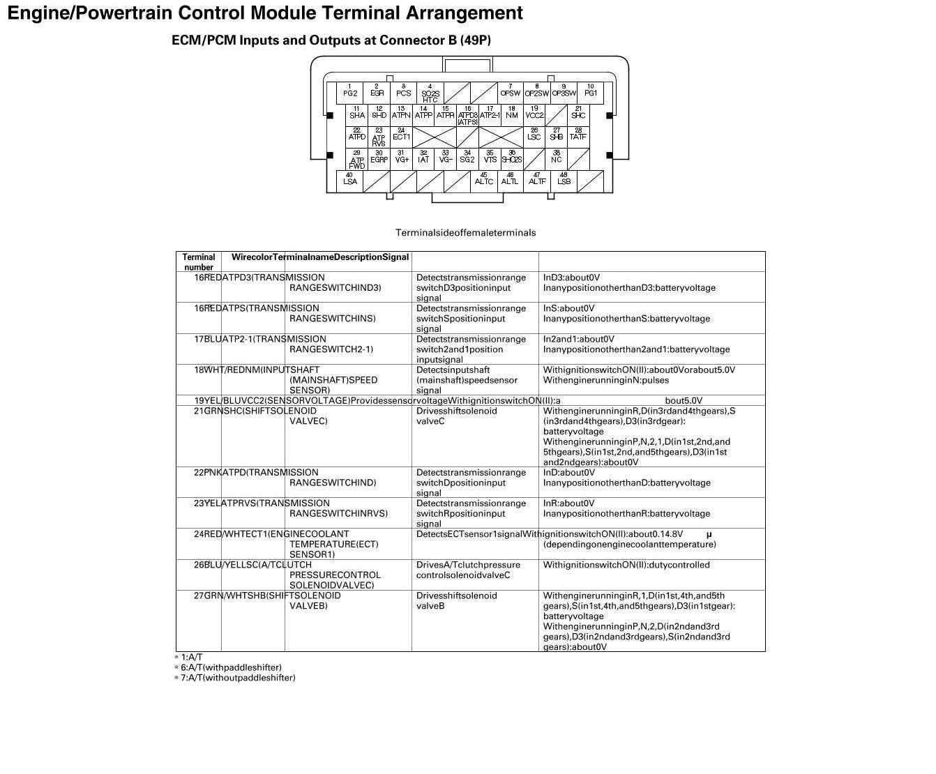 ECM/PCM Inputs And Outputs At Connector B