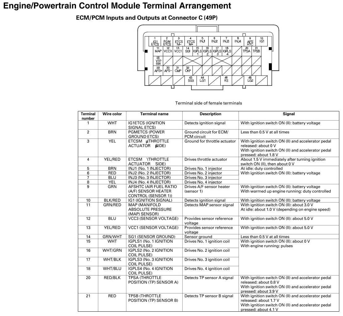 ECM/PCM Inputs And Outputs At Connector C