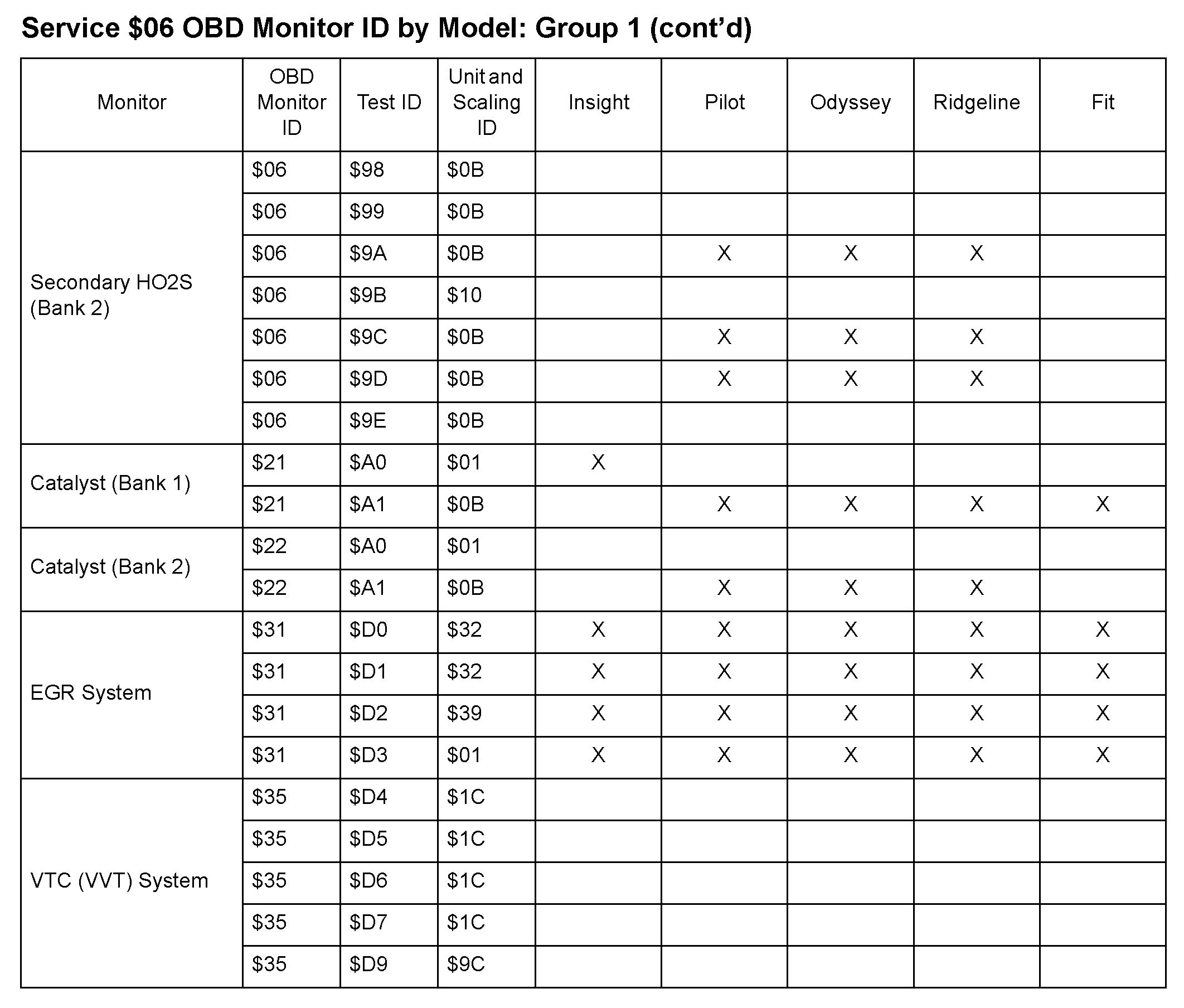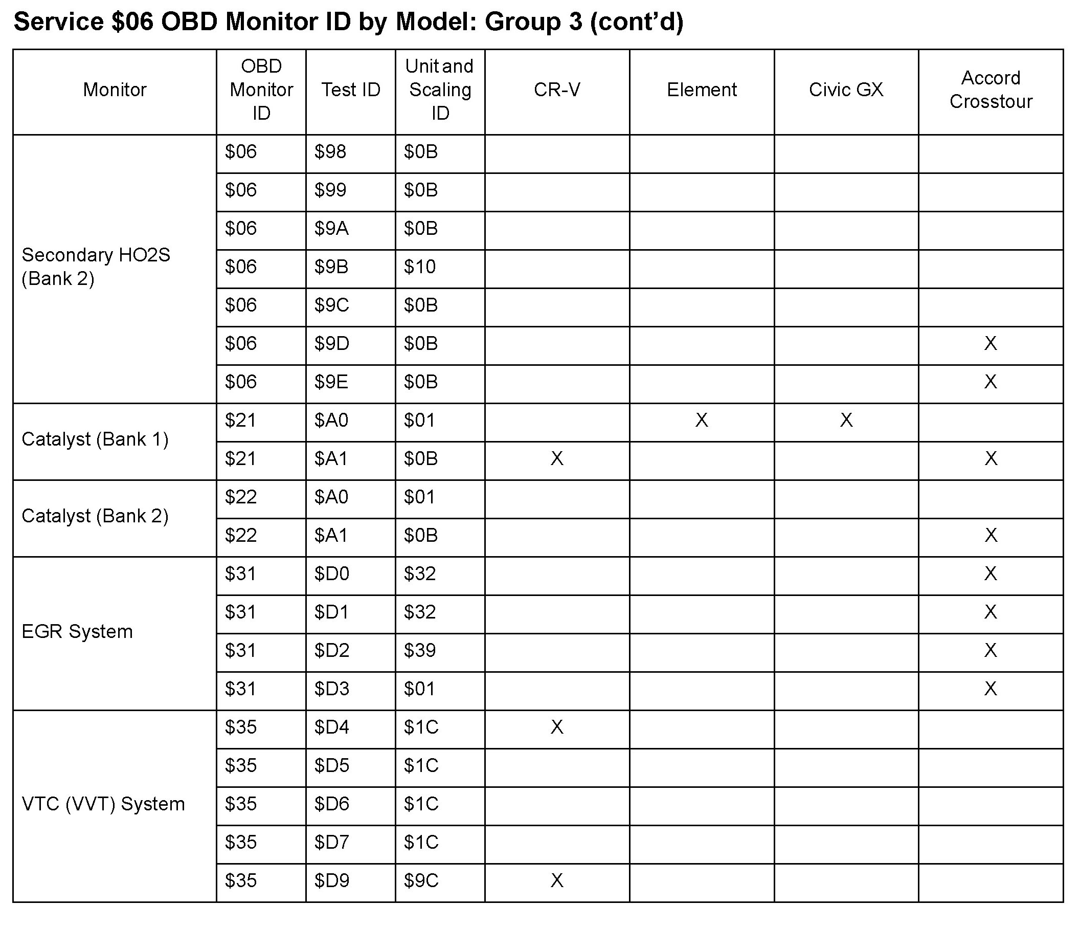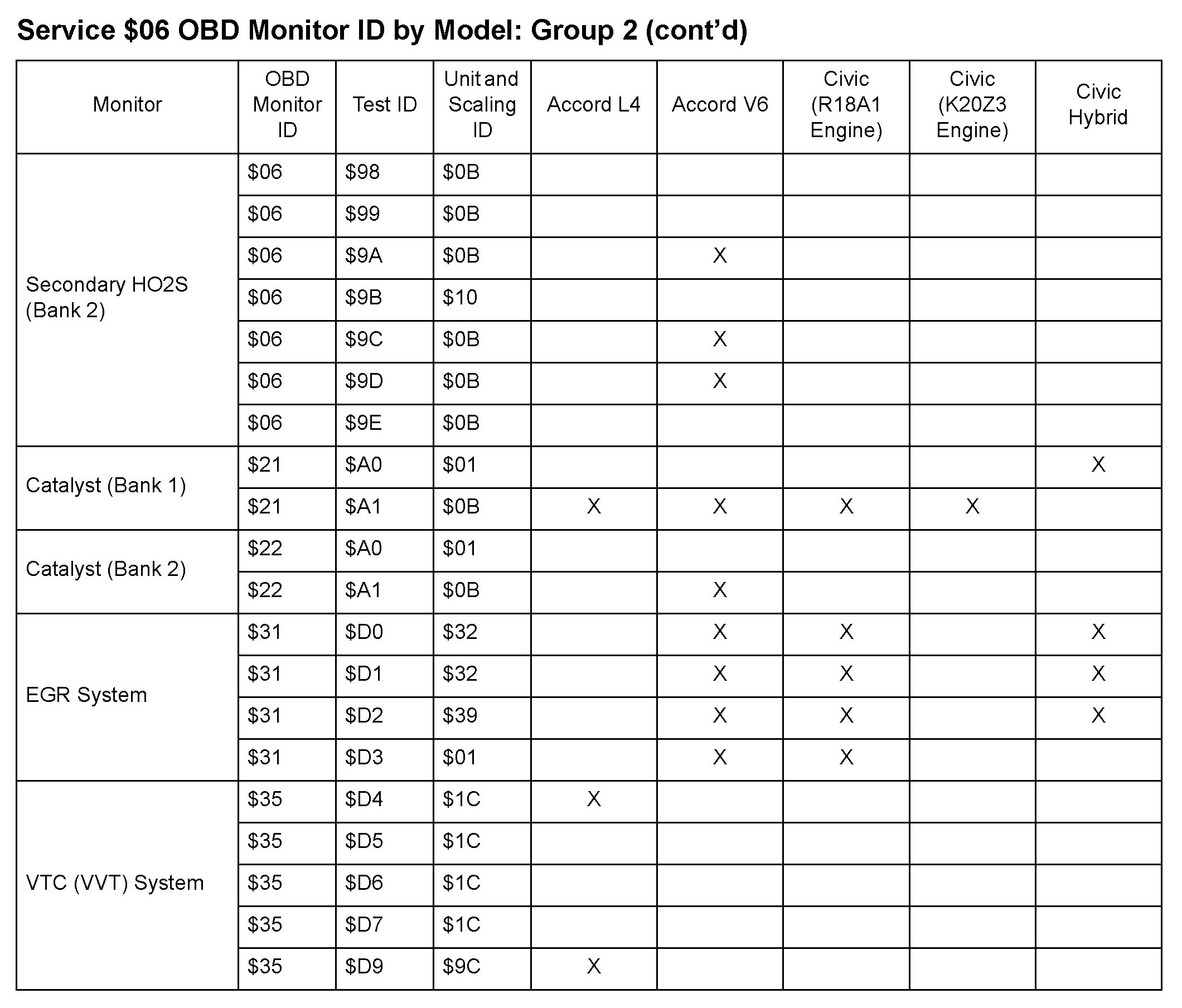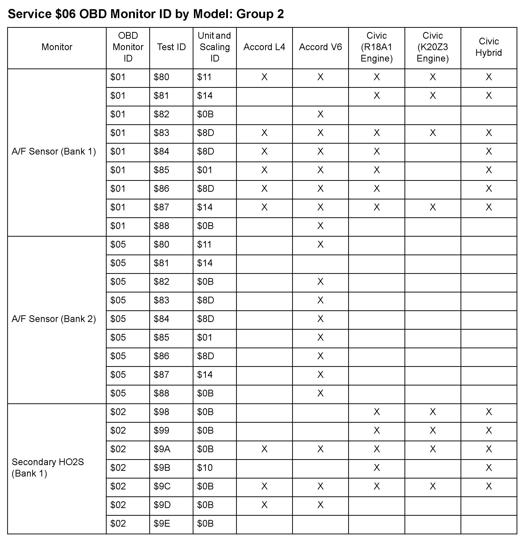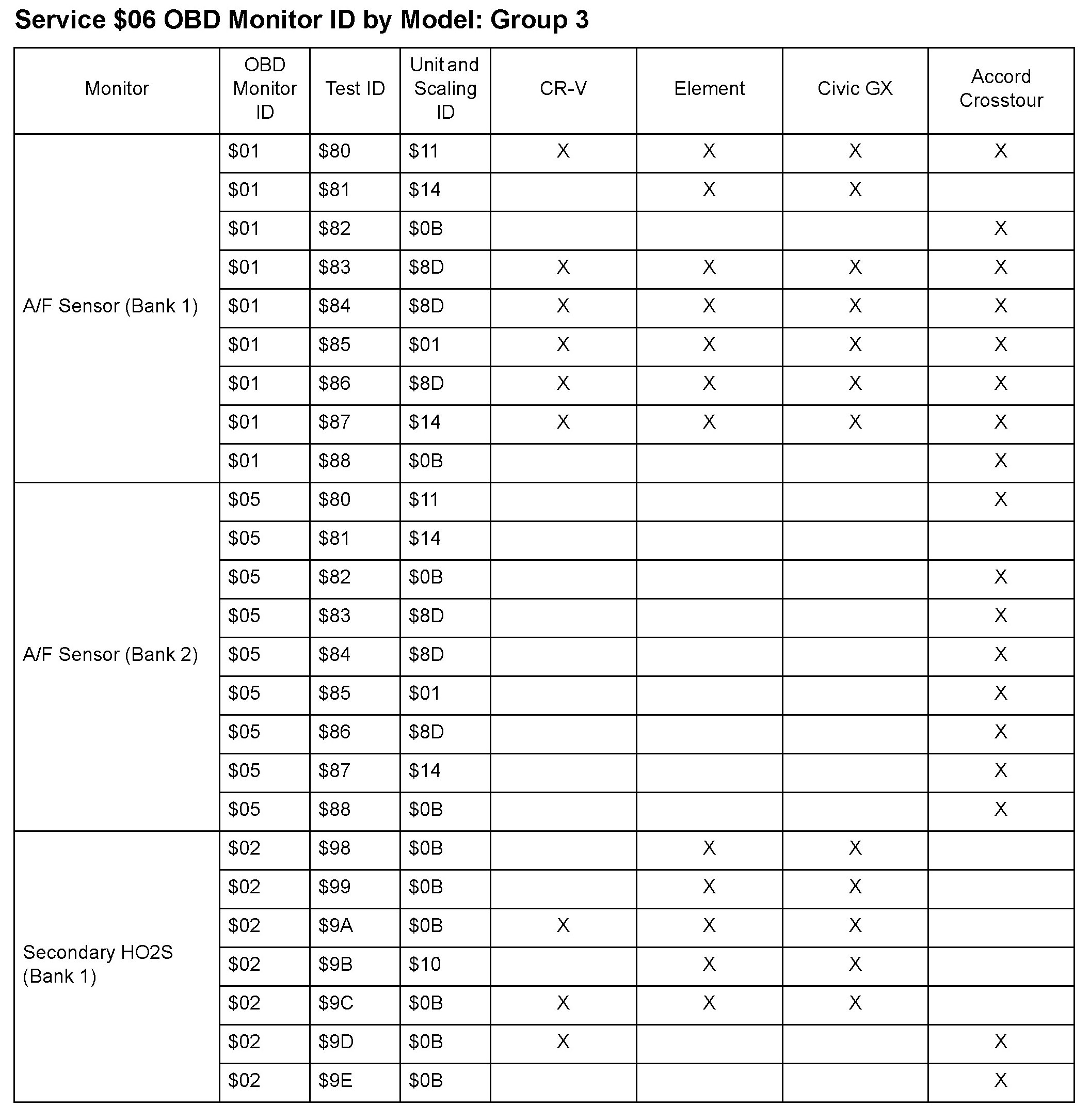 SAE J1979 Mode/Service $06 Test Information: All 2010 Hondas