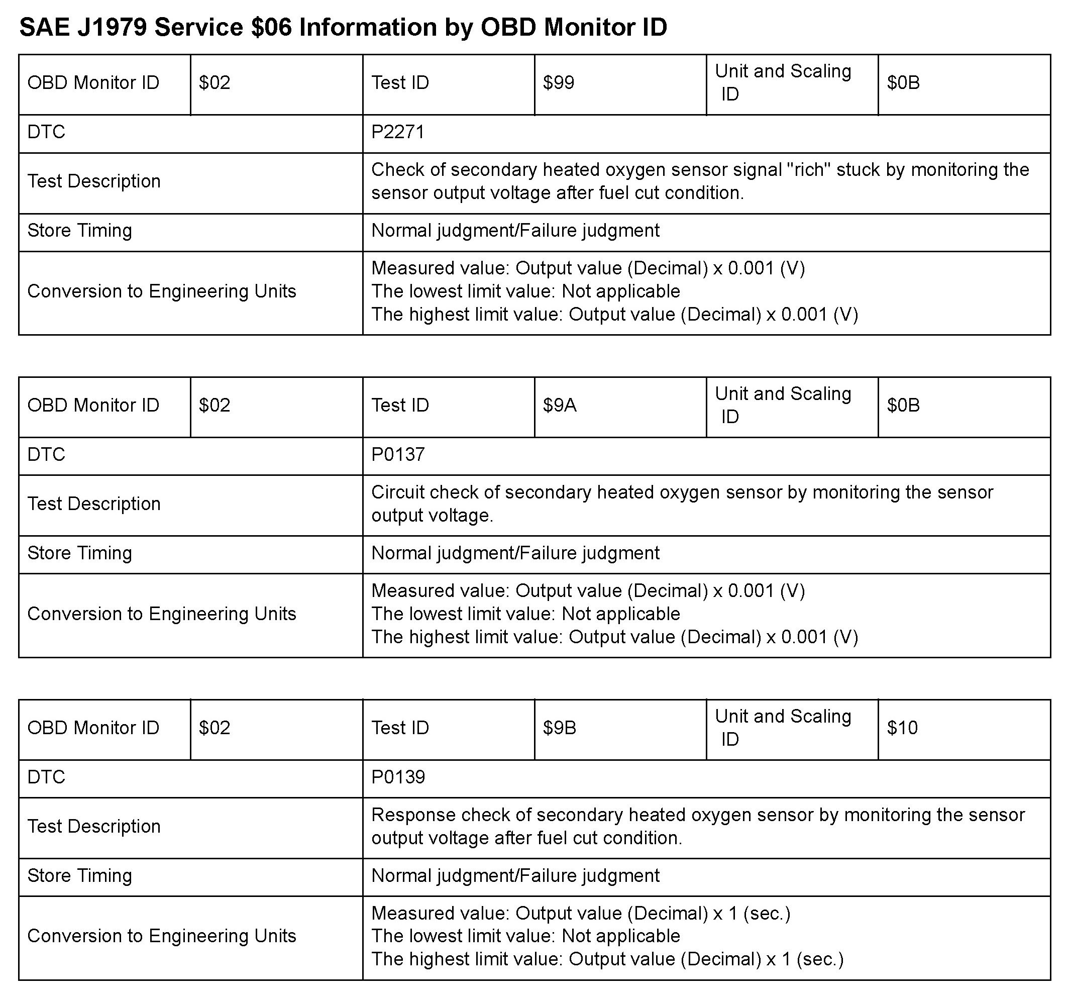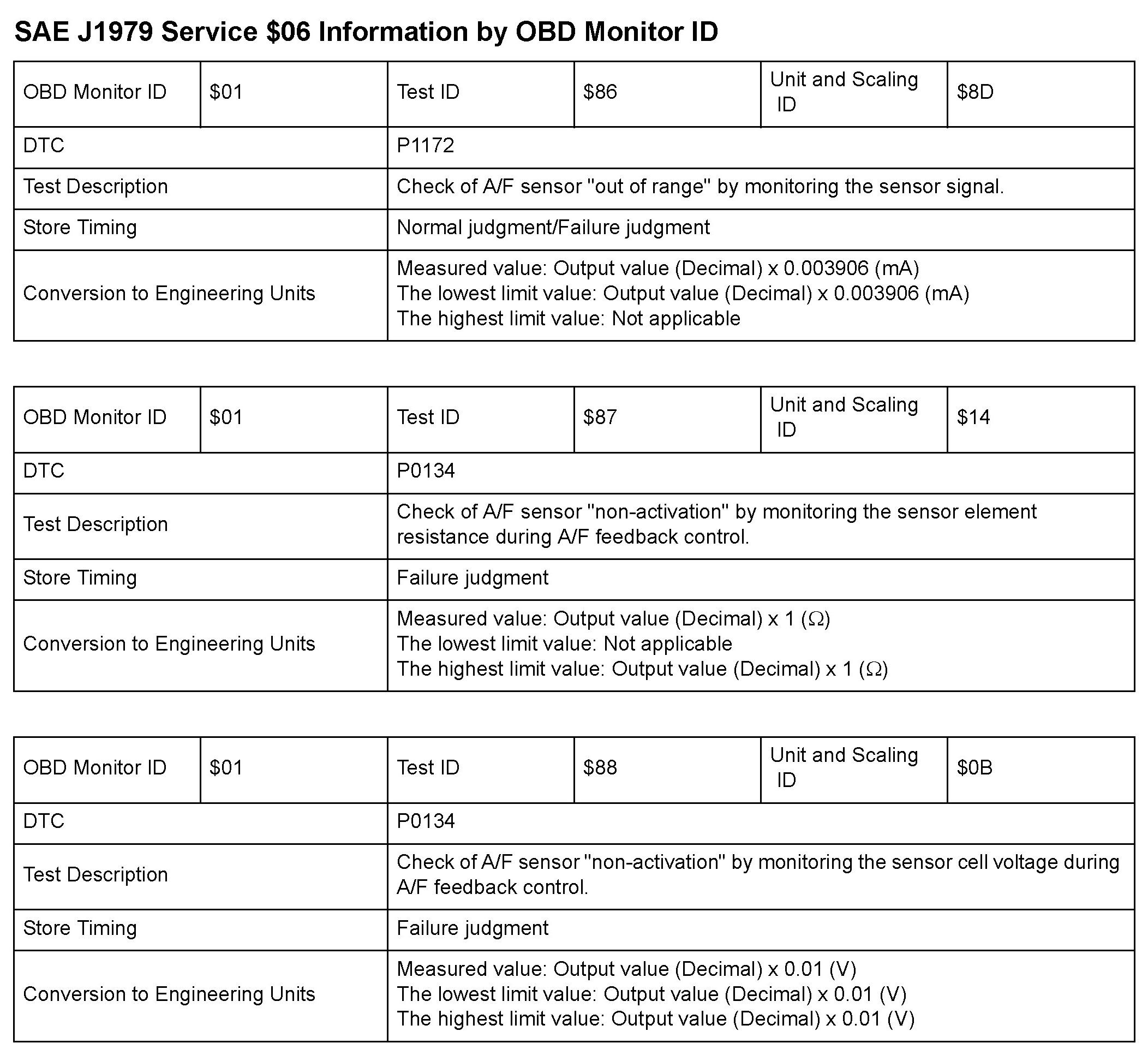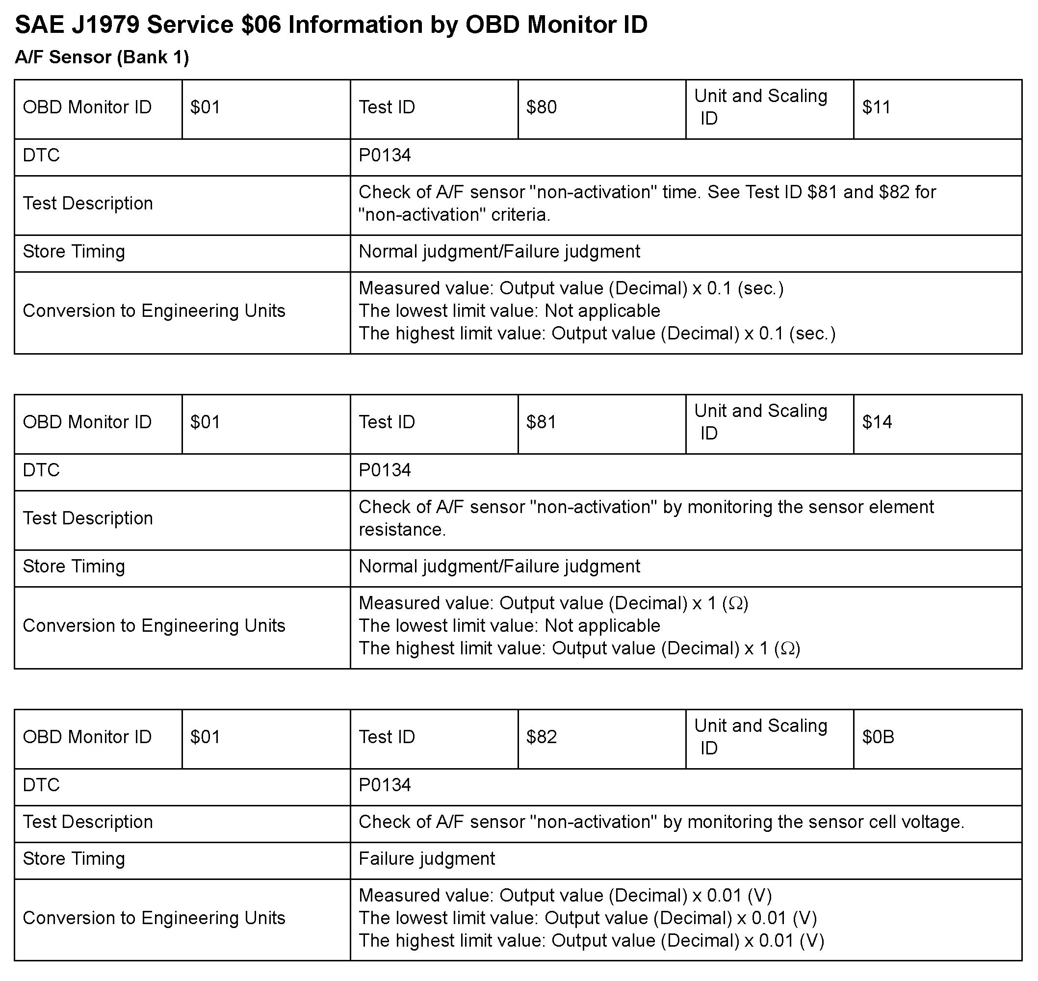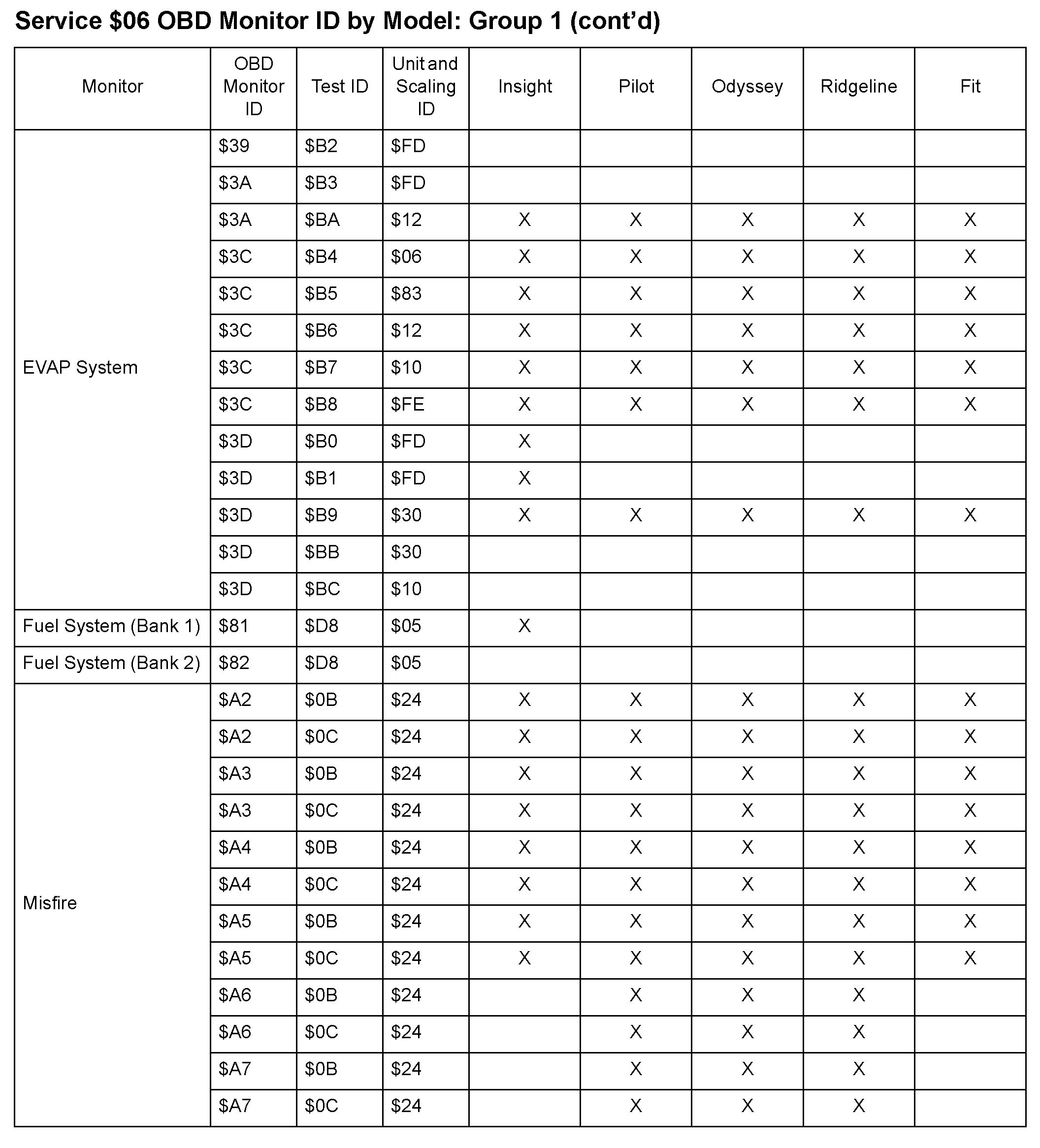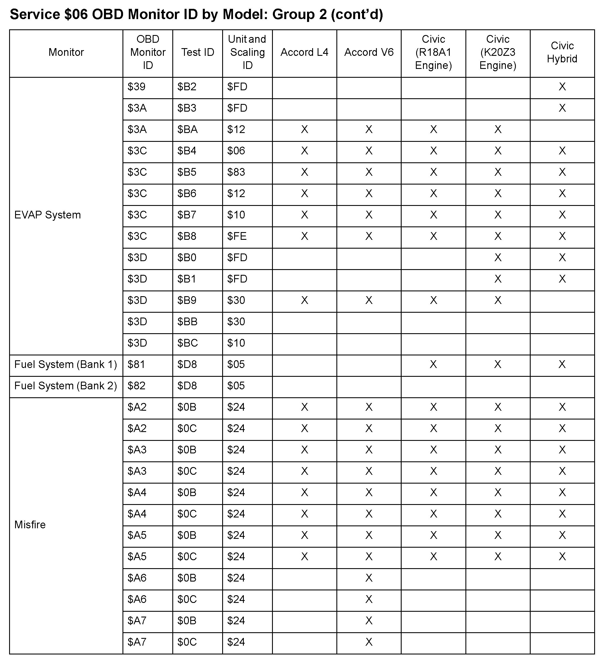SAE J1979 Mode/Service $06 Test Information: All 2010 Hondas
