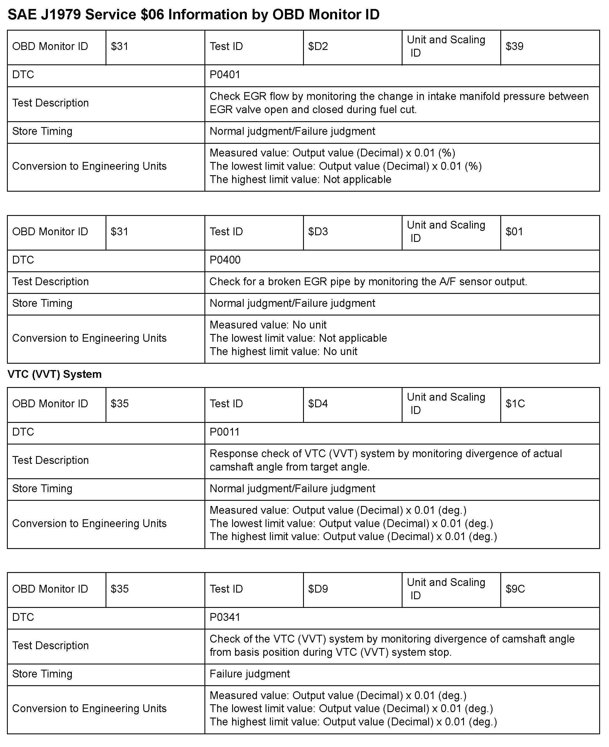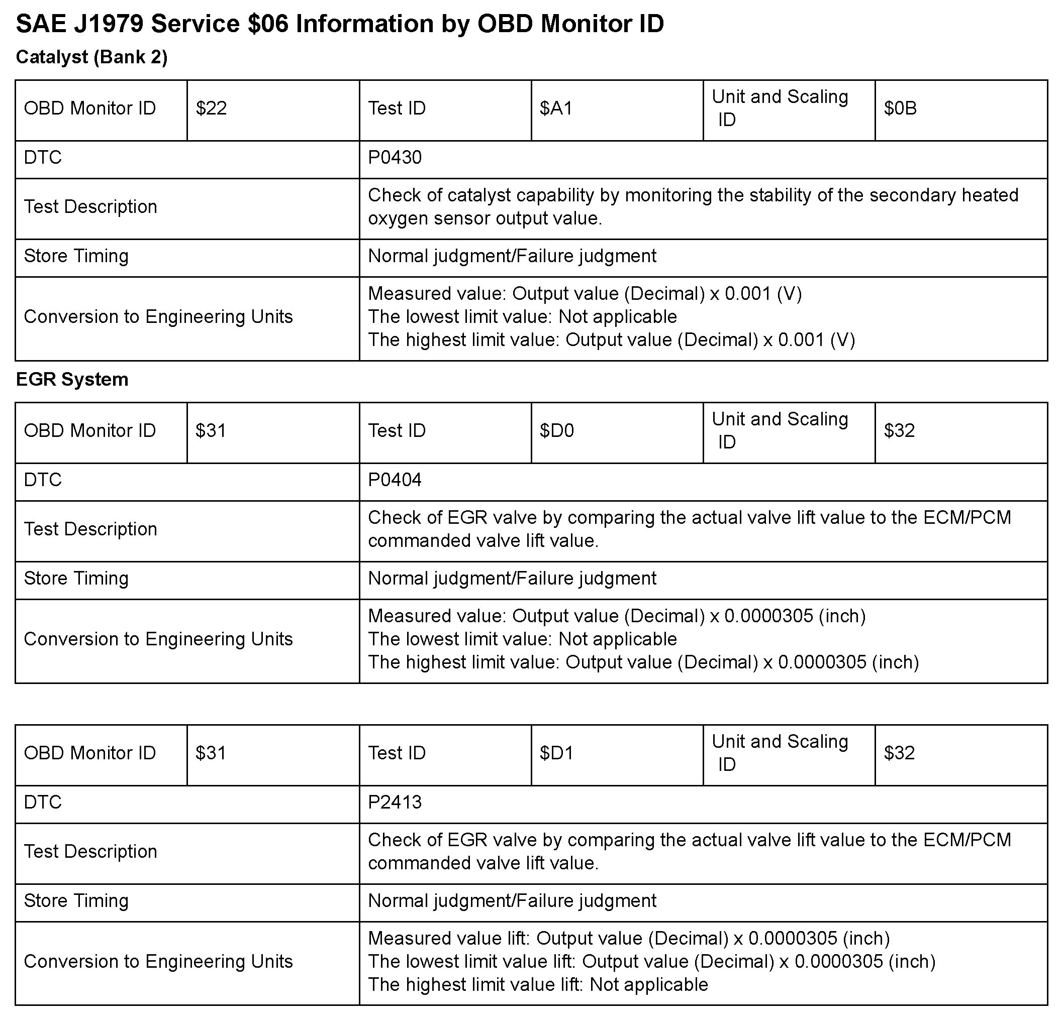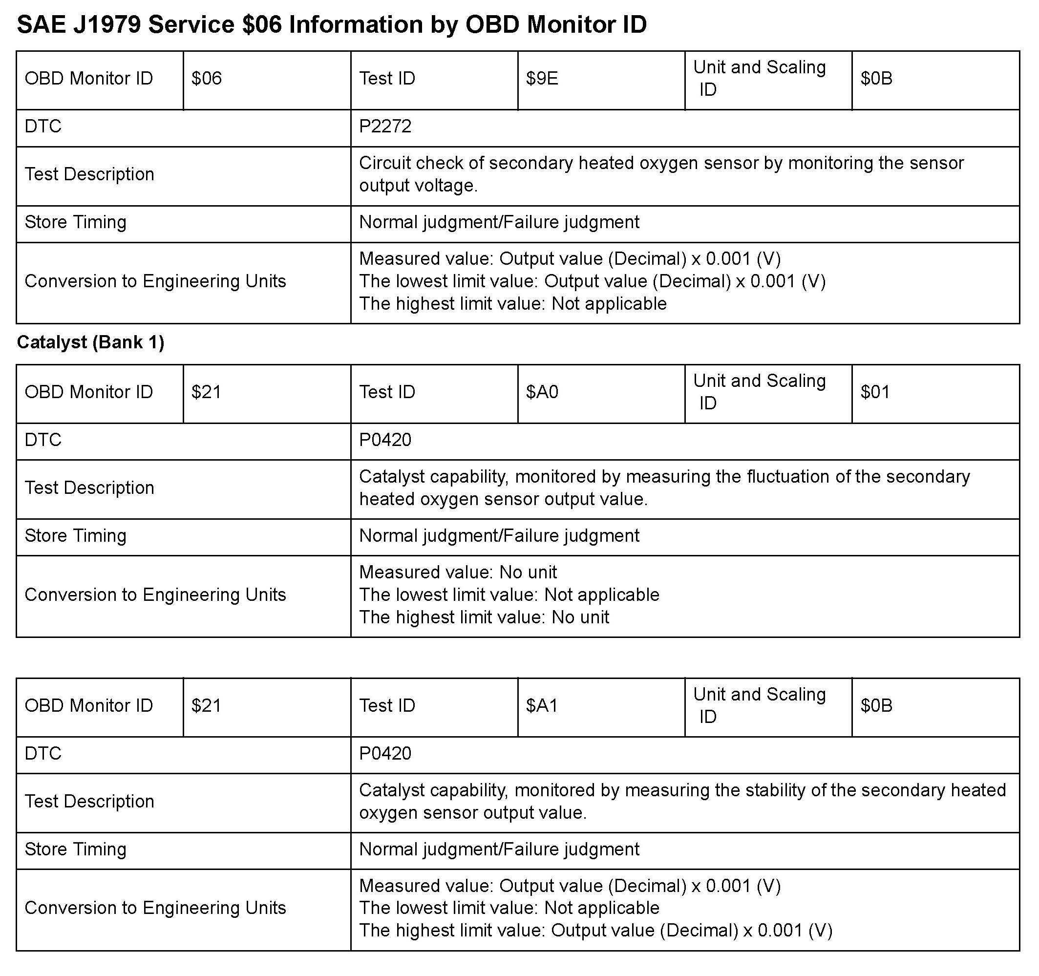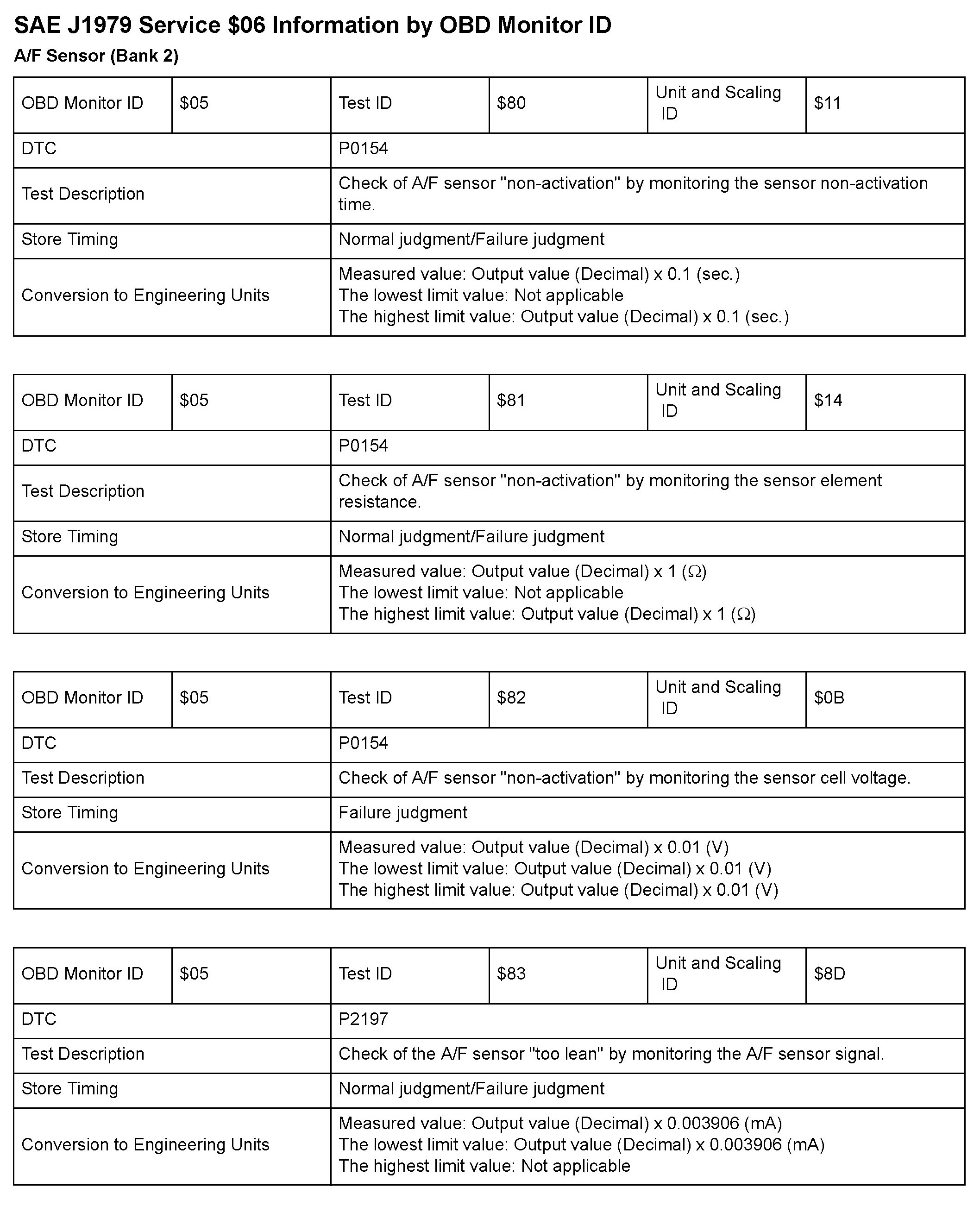 SAE J1979 Mode/Service $06 Test Information: All 2010 Hondas