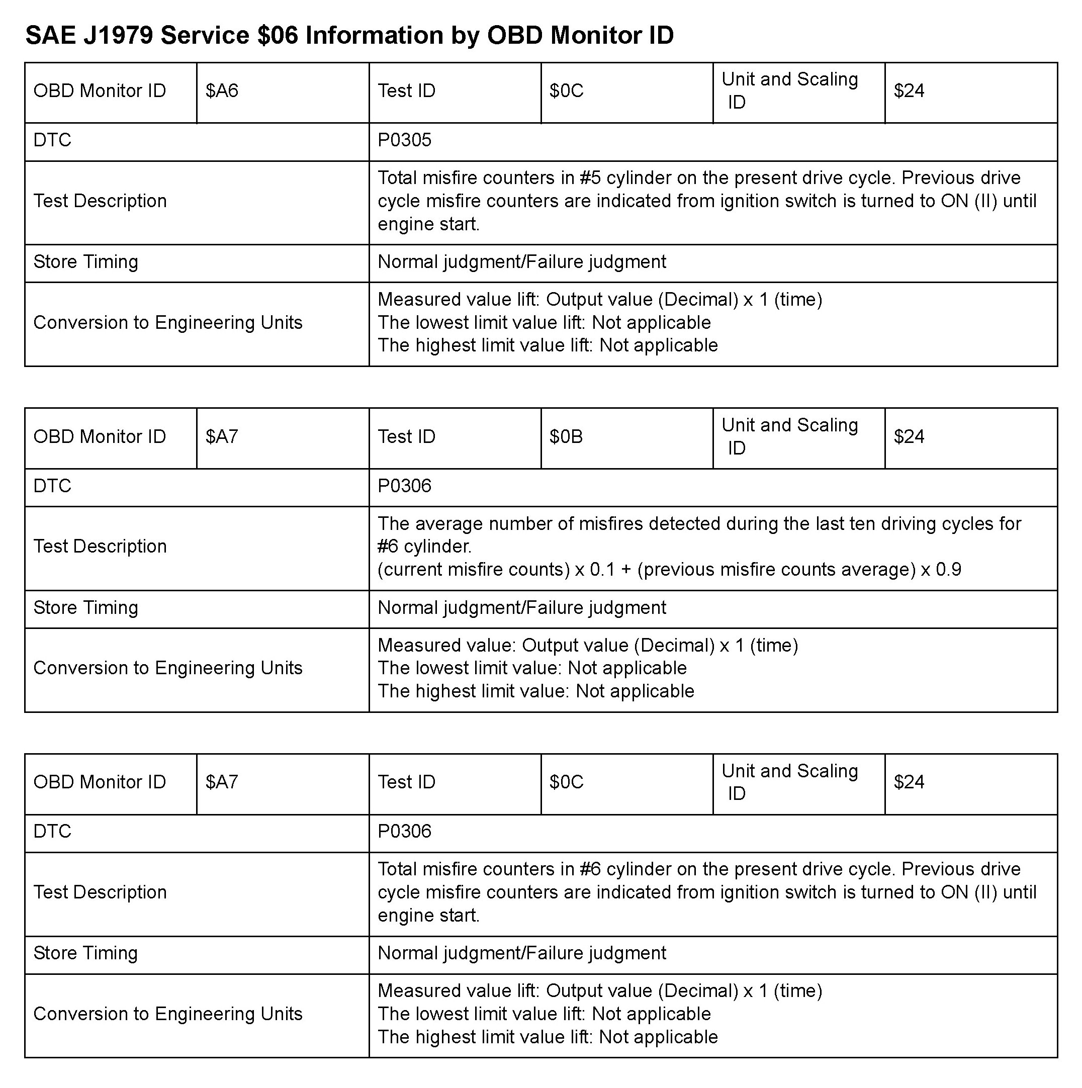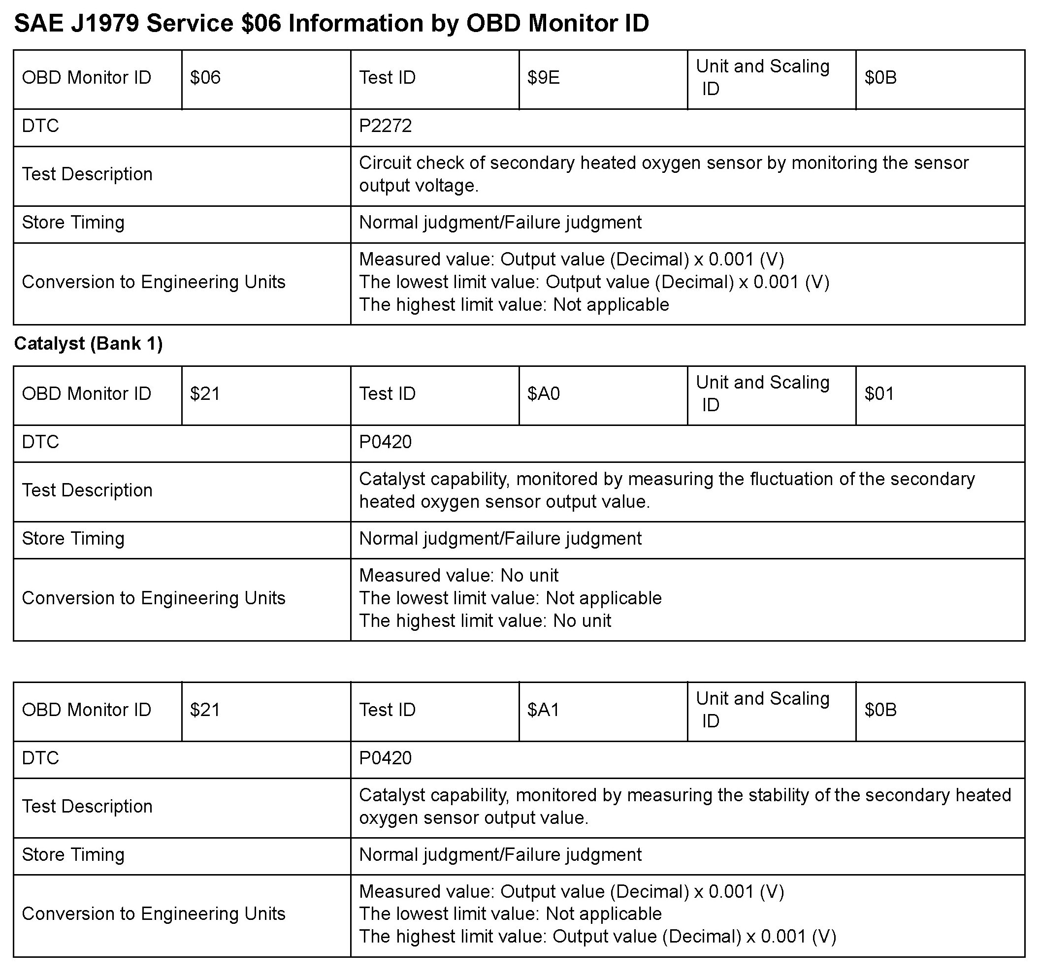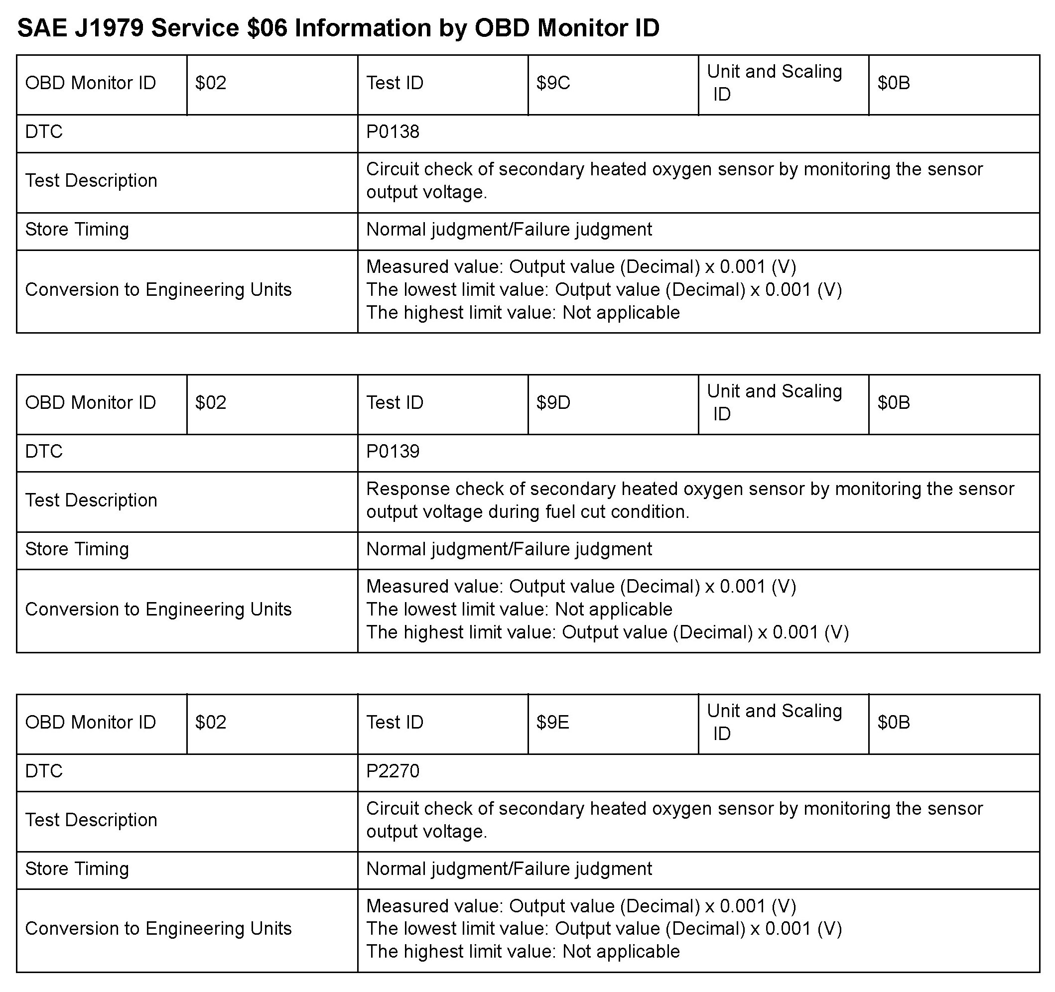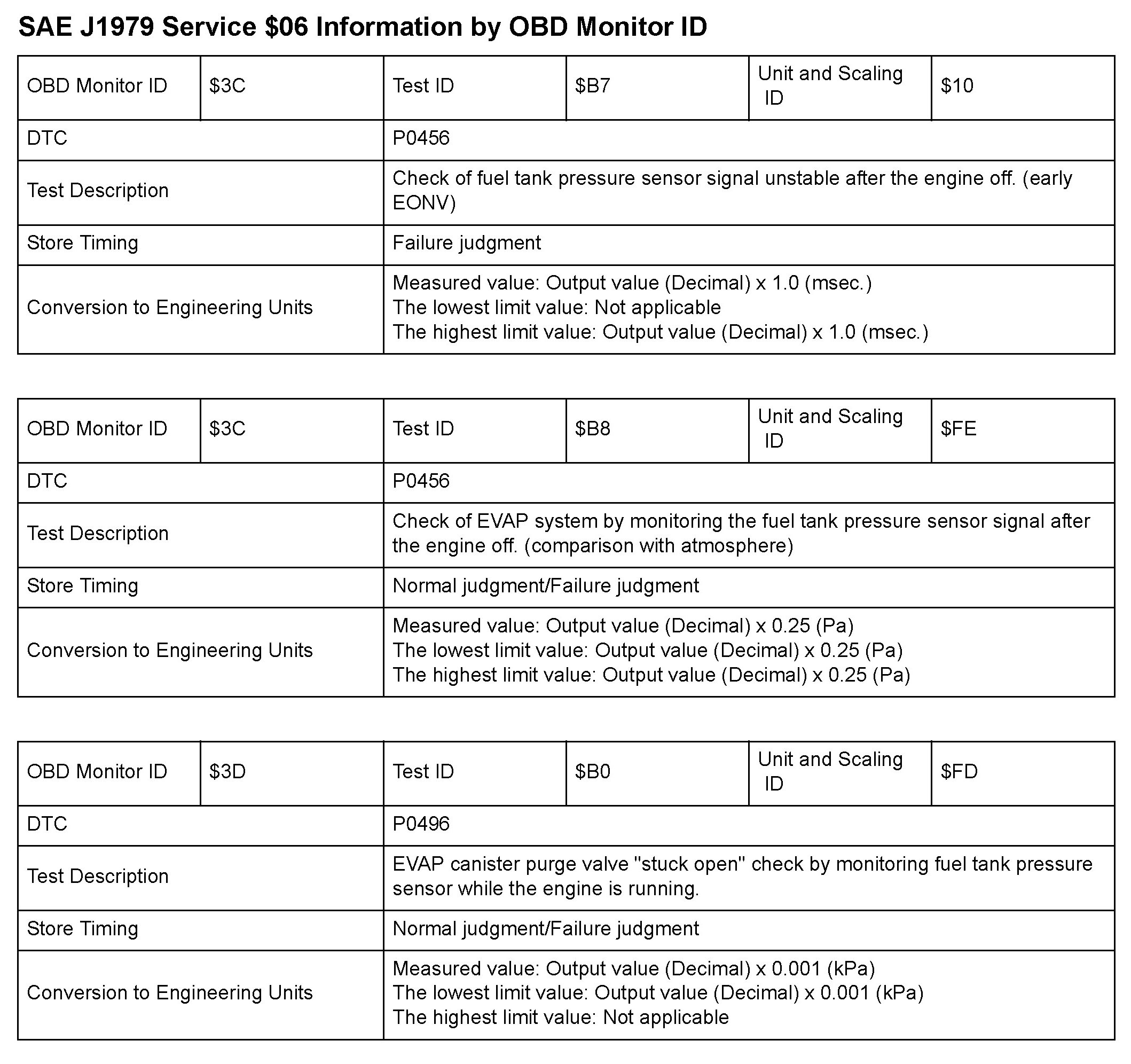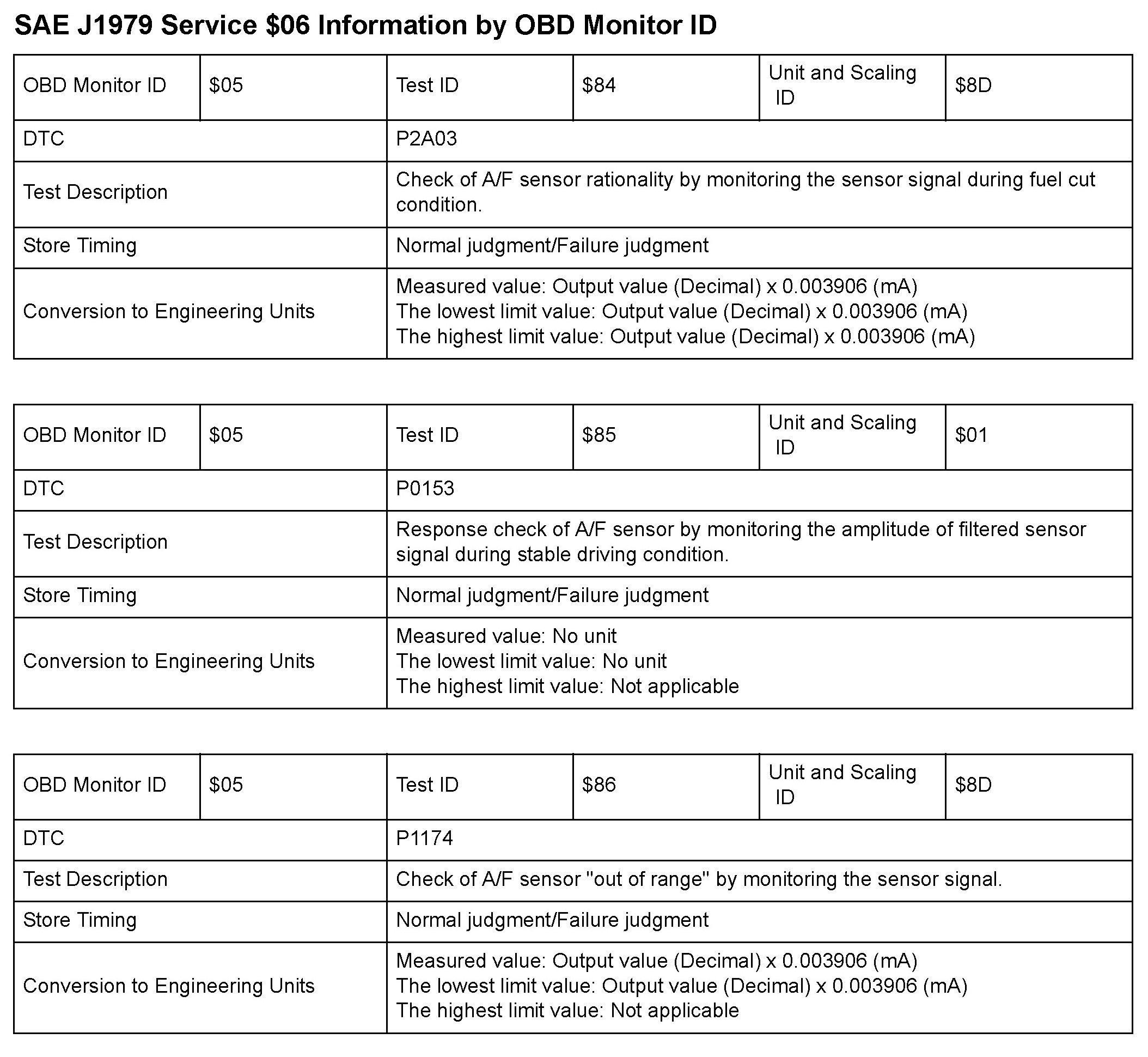 SAE J1979 Mode/Service $06 Test Information: All 2010 Hondas