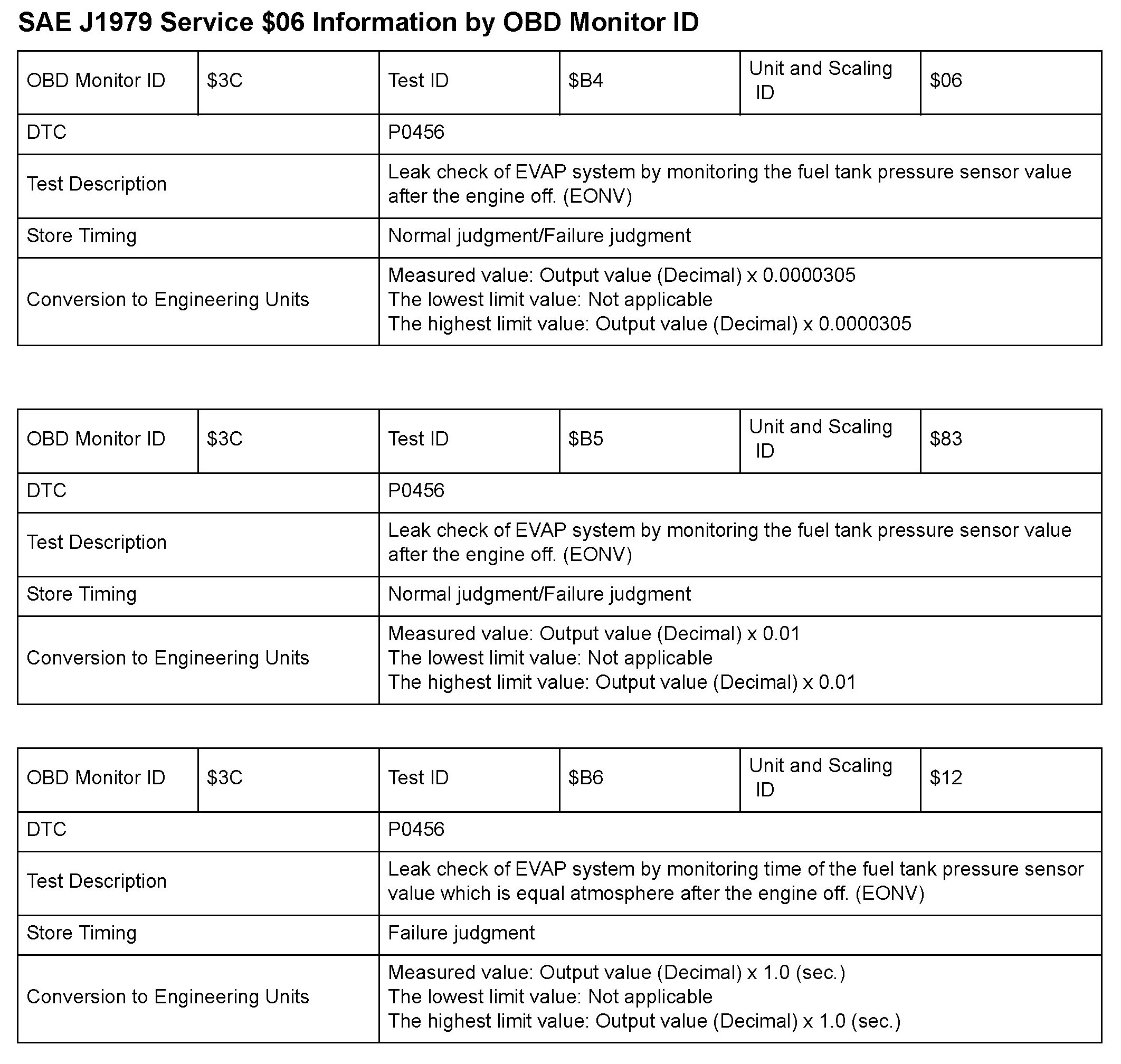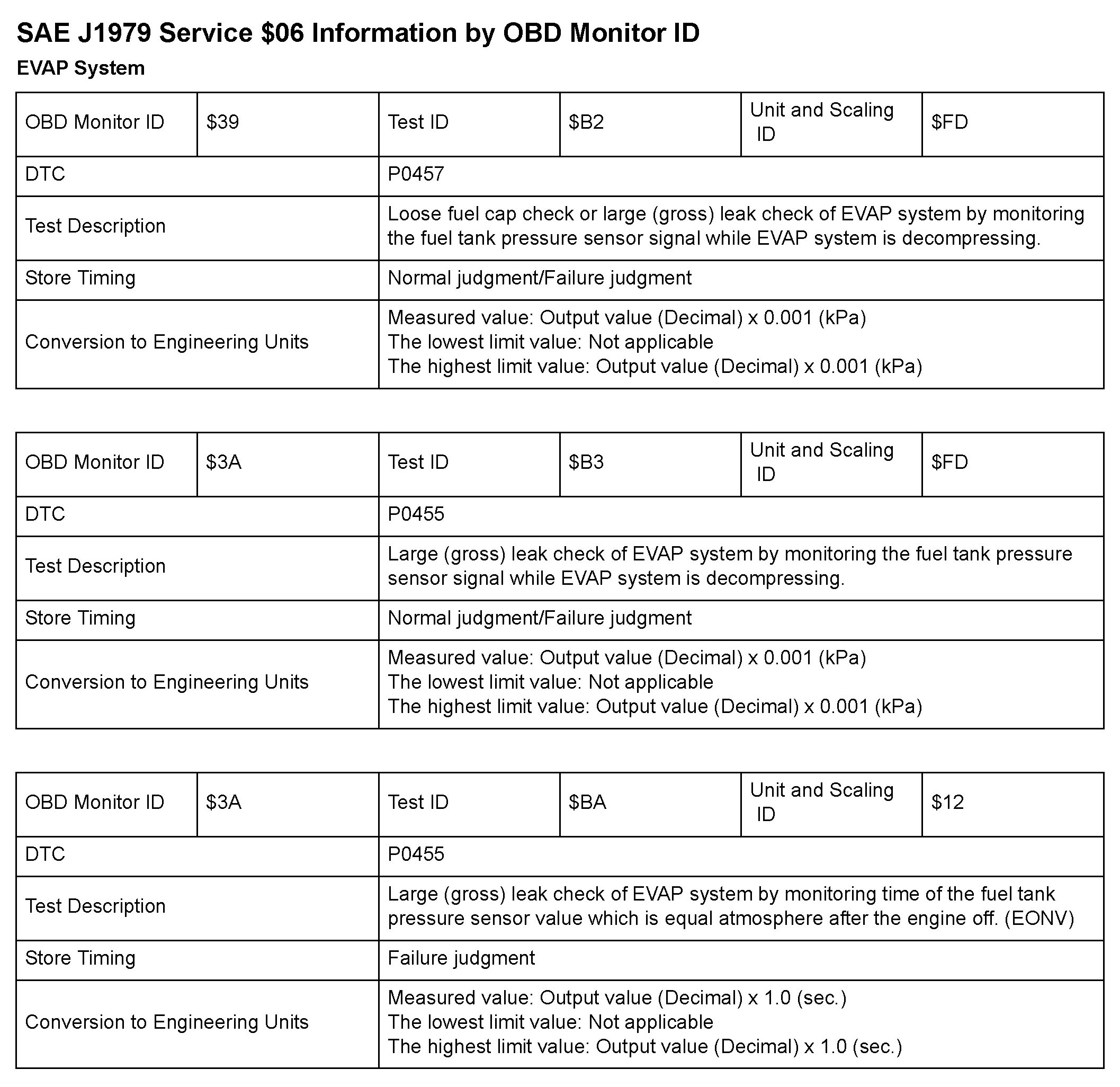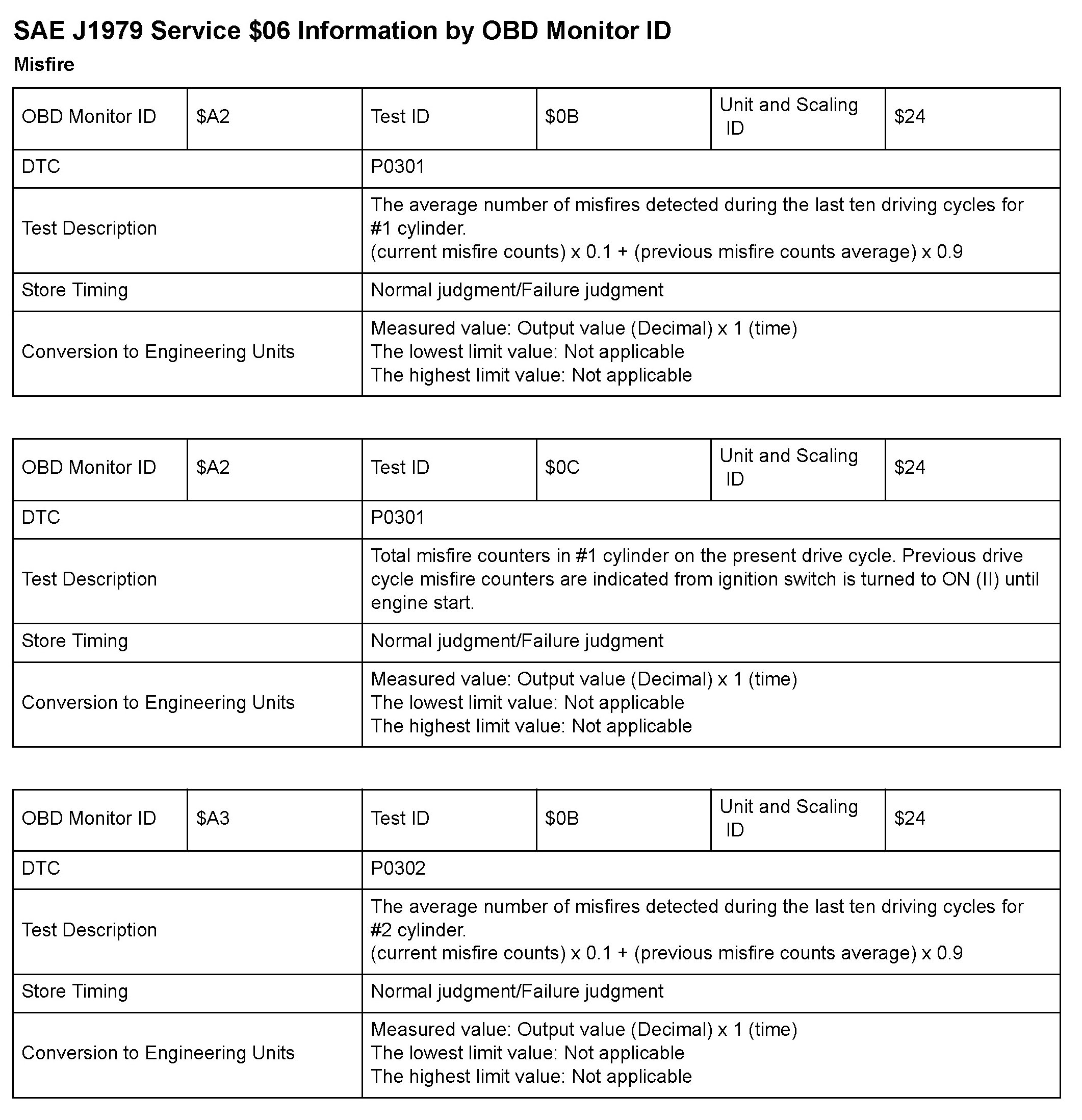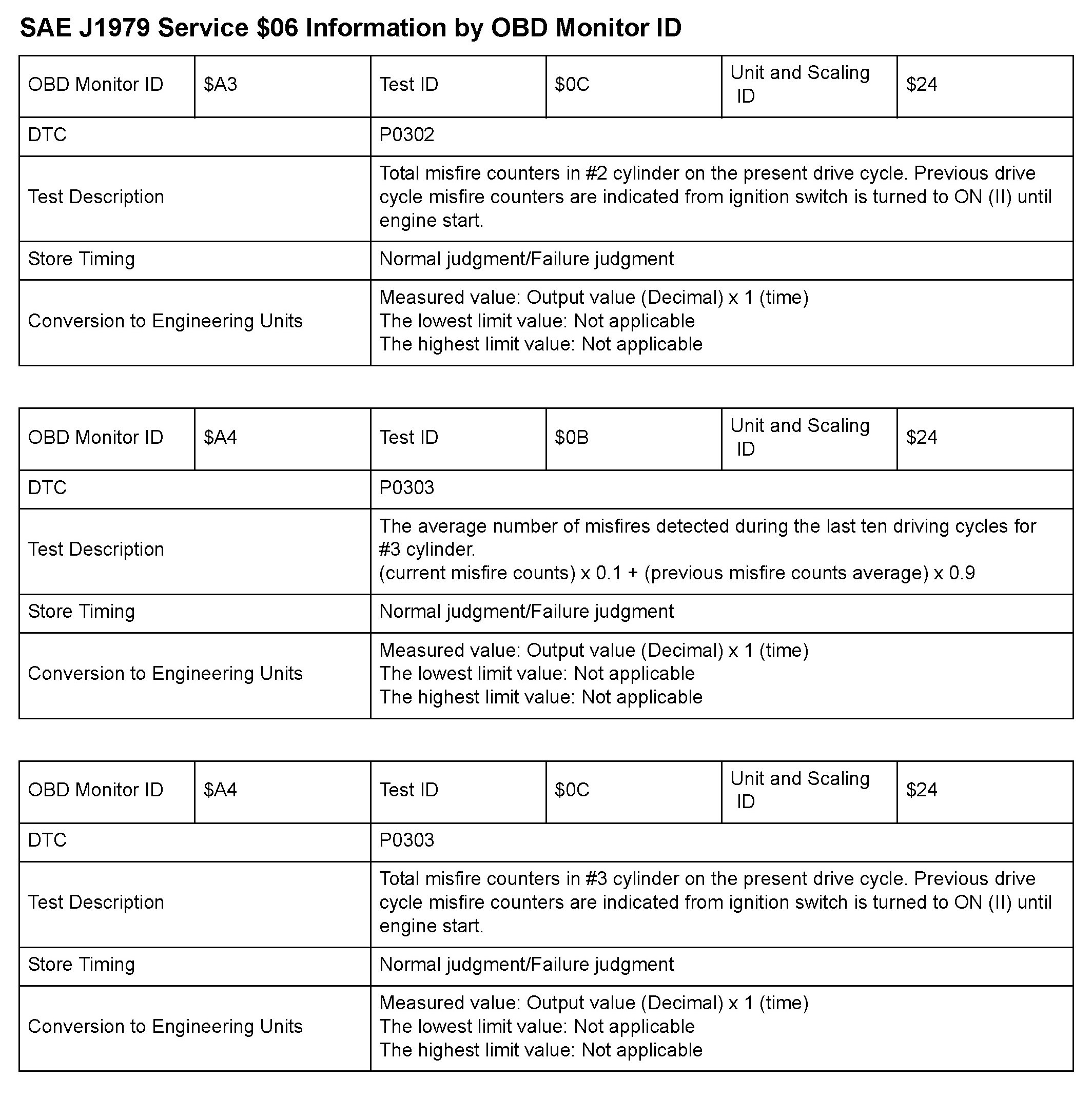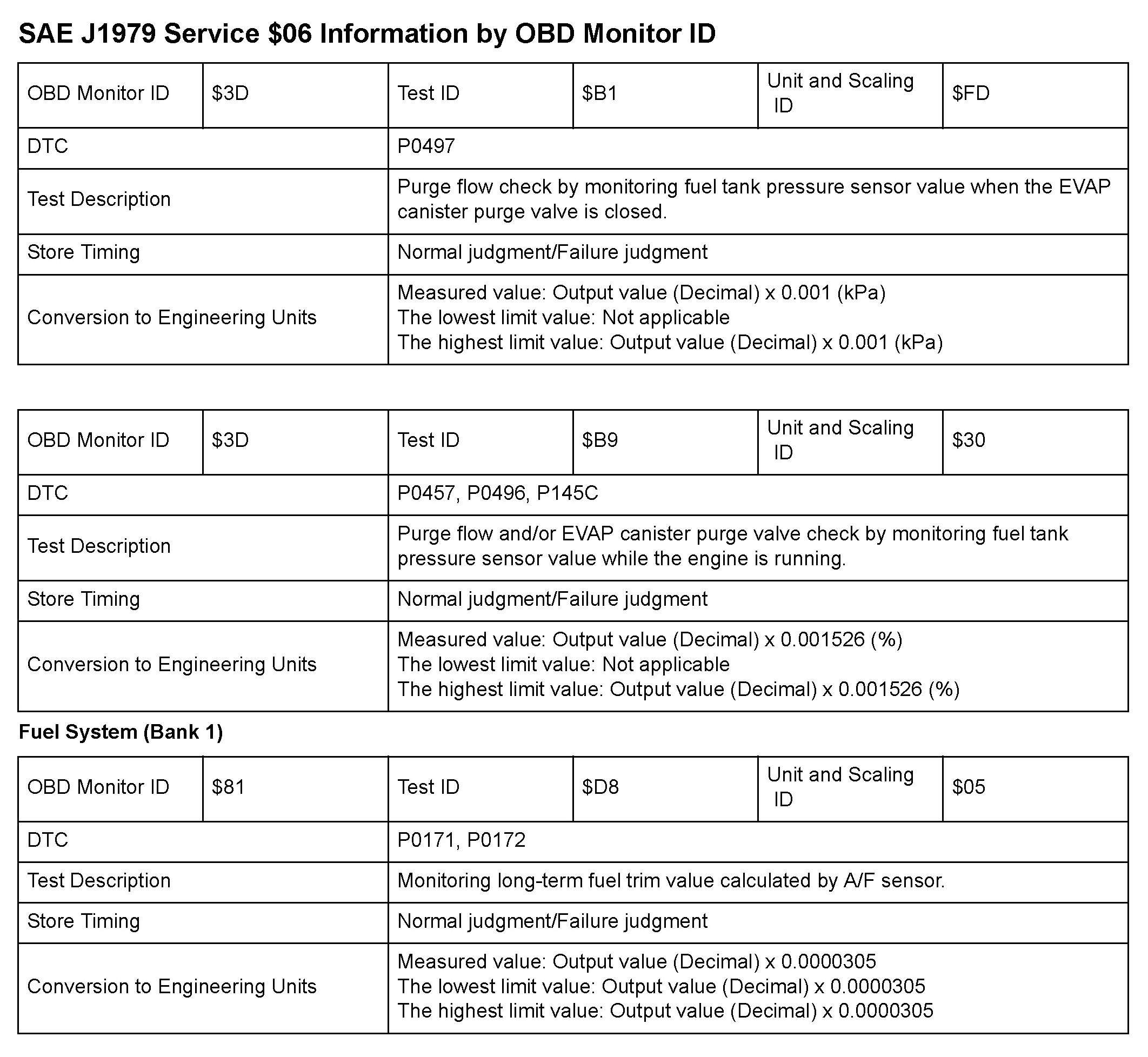SAE J1979 Mode/Service $06 Test Information: All 2010 Hondas
