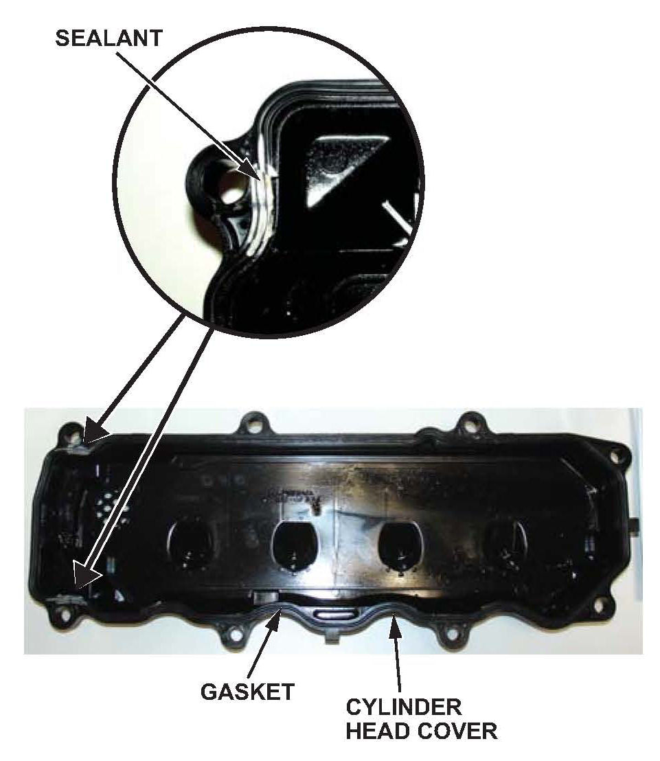 *7. Sealant was applied to the timing chain area of the cylinder head cover gasket that may cause the gasket to stick to the cylinder head. To avoid damaging the gasket, remove the cylinder head cover as follows:*