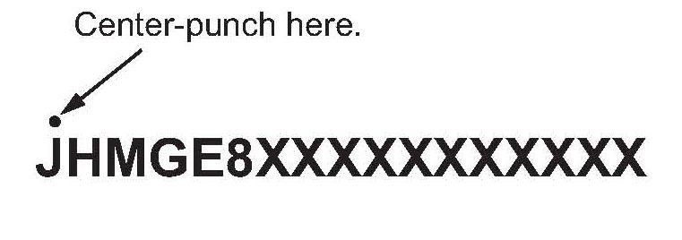 29. Center-punch a completion mark above the 1st character of the engine compartment VIN: