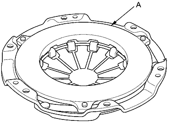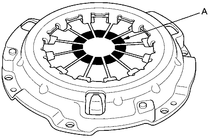 5. Inspect the fingers of the diaphragm spring (A) for wear at the release bearing contact area.