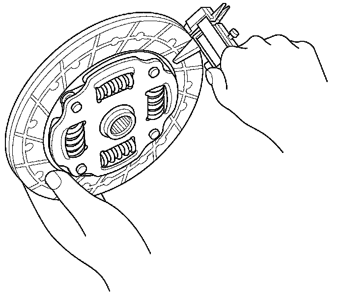 10. Measure the clutch disc thickness. If the measurement is less than the service limit, replace the clutch disc.