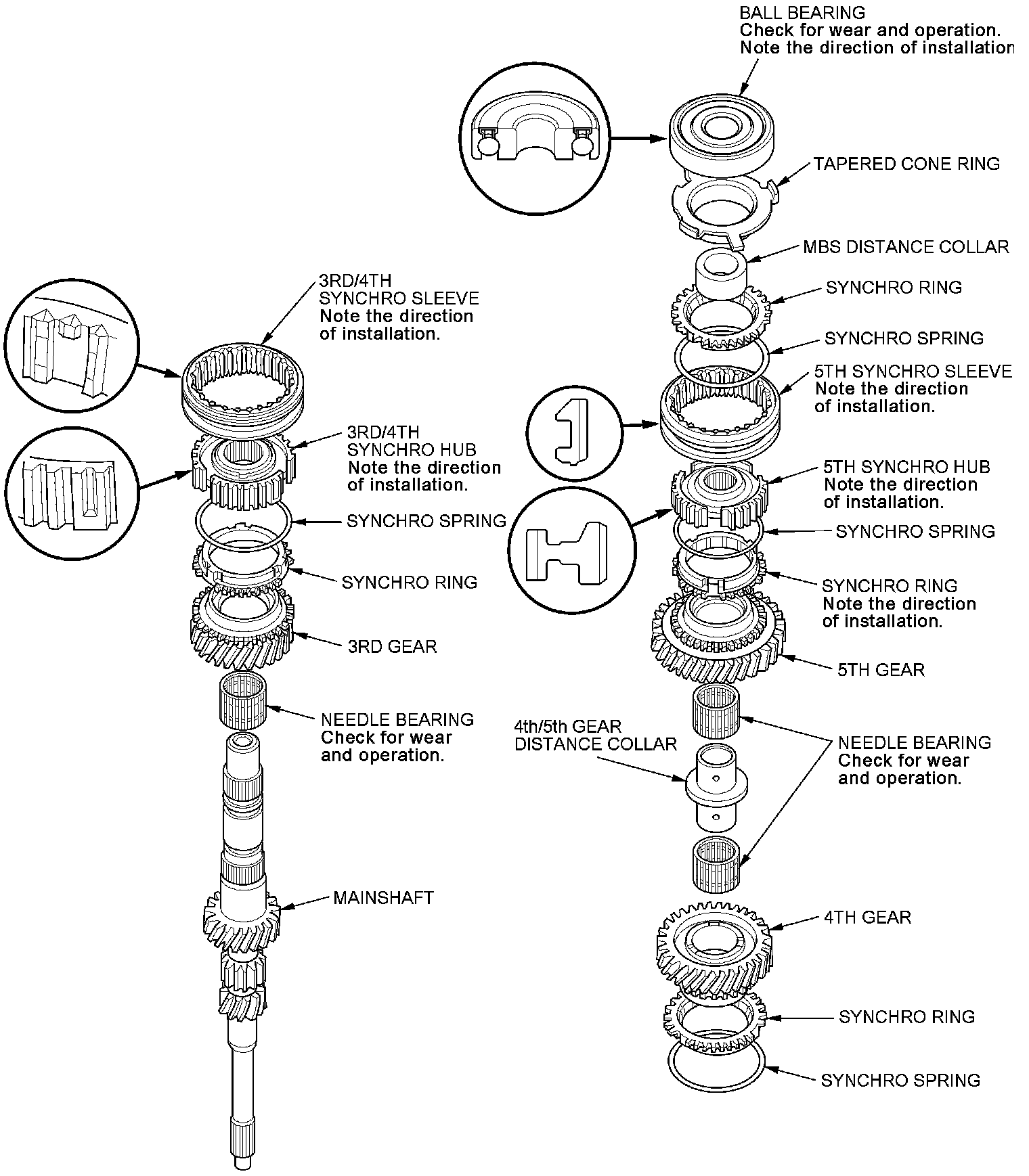 NOTE: Make sure to install the 3rd/4th synchro hub in the direction shown.