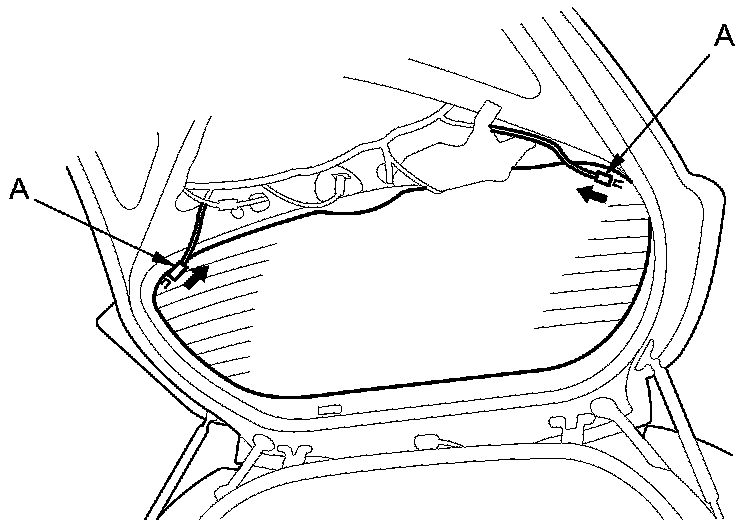 3. Disconnect the rear window defogger connectors (A).