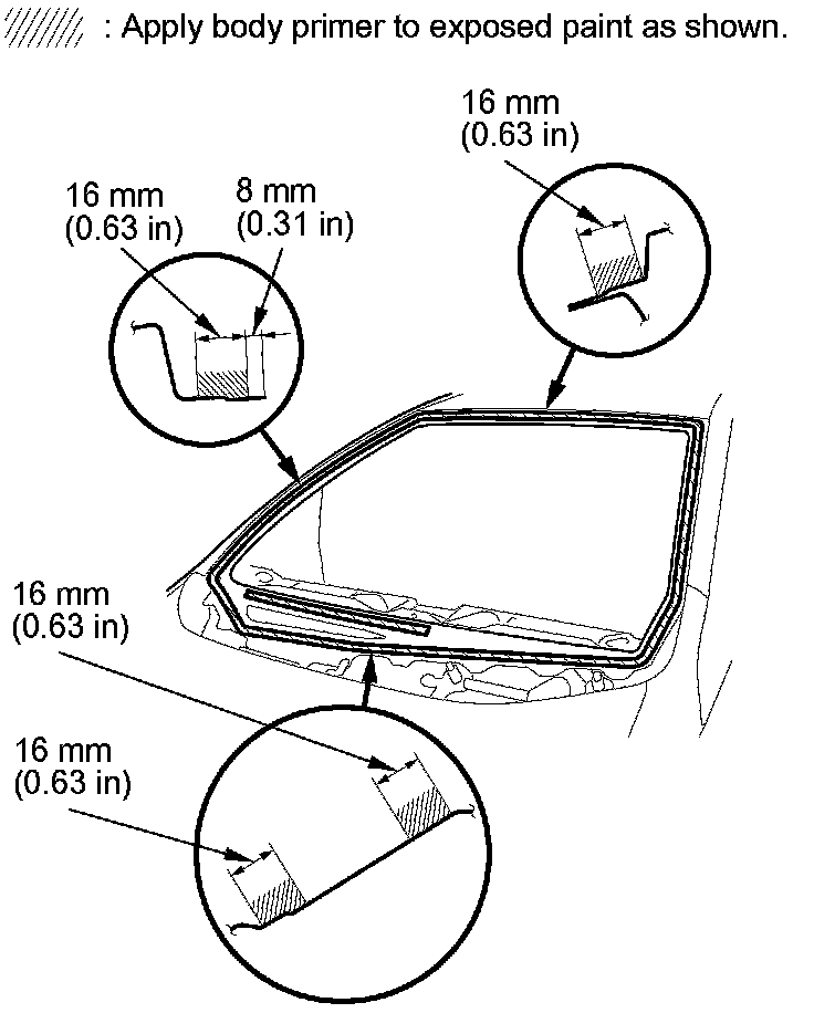 - Never touch the primed surfaces with your hands. If you do, the adhesive may not bond to the windshield properly, causing a leak after the windshield is installed.