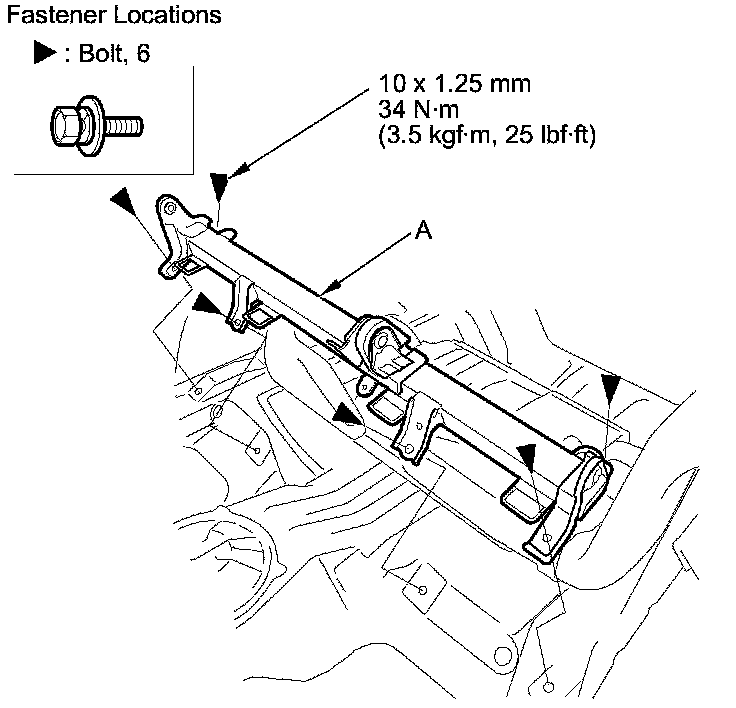 2. Remove the bolts, then remove the rear seat-back beam (A).