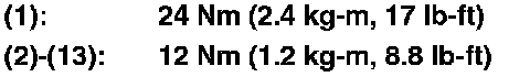 6. Tighten the bolts in three steps. Wipe off the excess liquid gasket from crankshaft pulley end and the drive plate end.