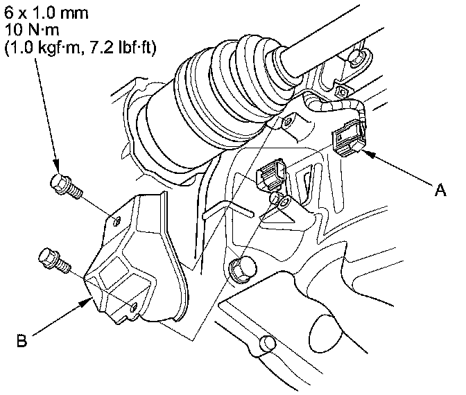 8. Connect the CKP sensor connector (A), then install the CKP sensor cover (B).