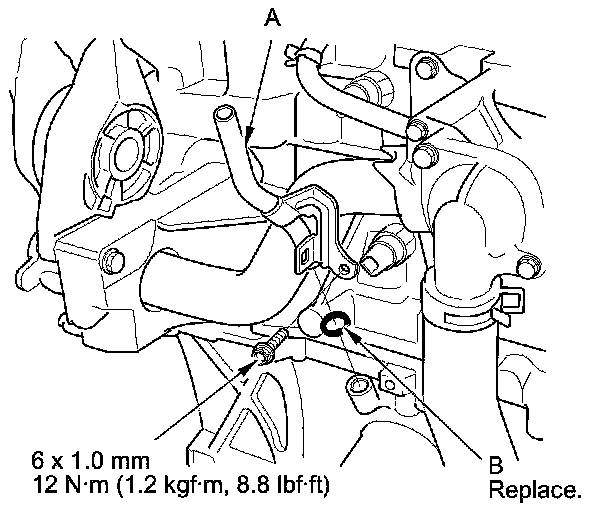 9. Install the dipstick tube (A) with a new O-ring (B), then install the dipstick.
