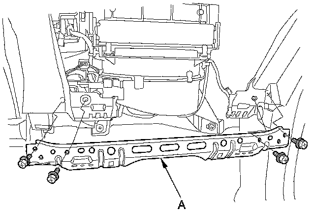3. Remove the bolts and the glove box frame (A).