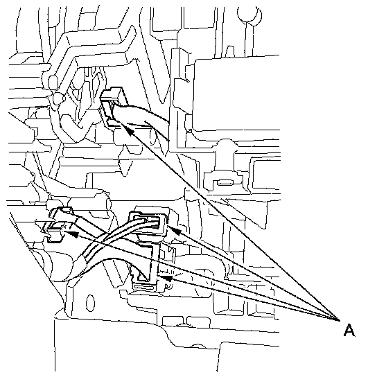 4. Disconnect the connectors (A) from the A/C wire harness and the mode control motor and air mix control motor.