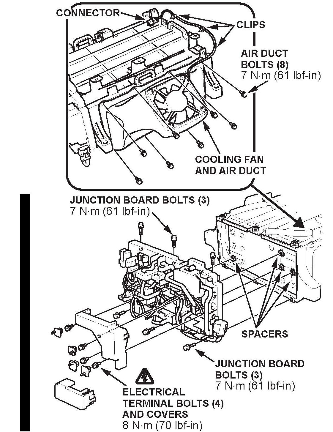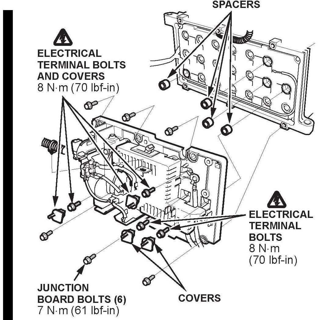 9. Install the junction board bolts, and torque them to 8 N.m (70 lbf-in).
