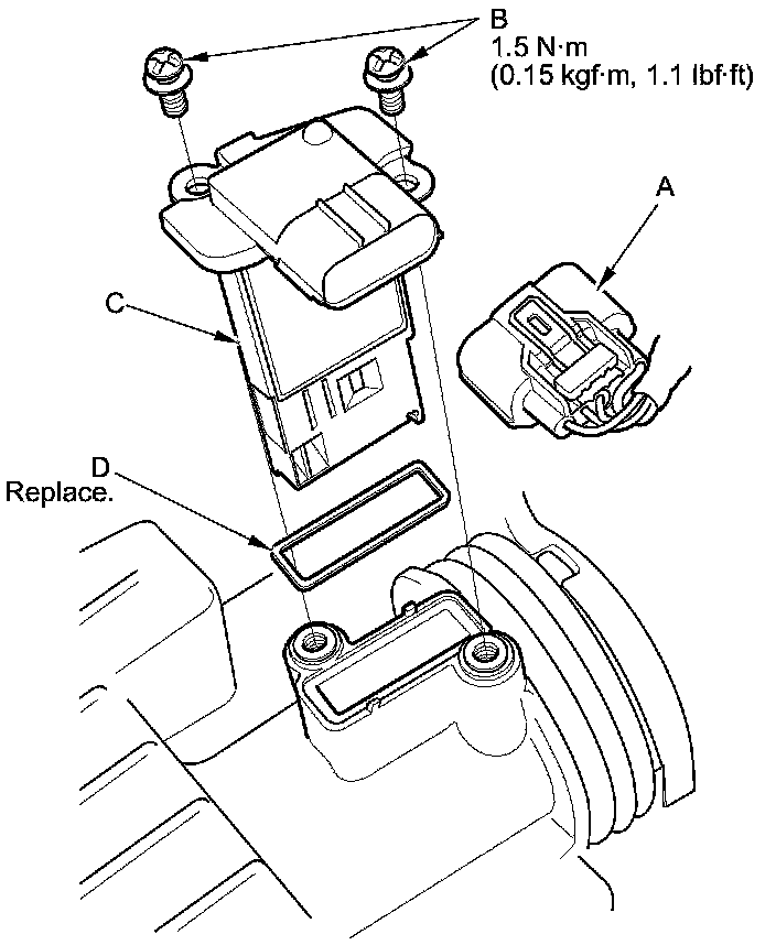1. Disconnect the MAF sensor/IAT sensor 5P connector (A).