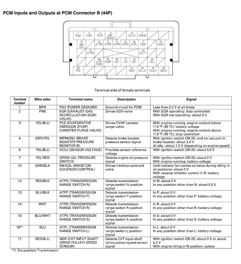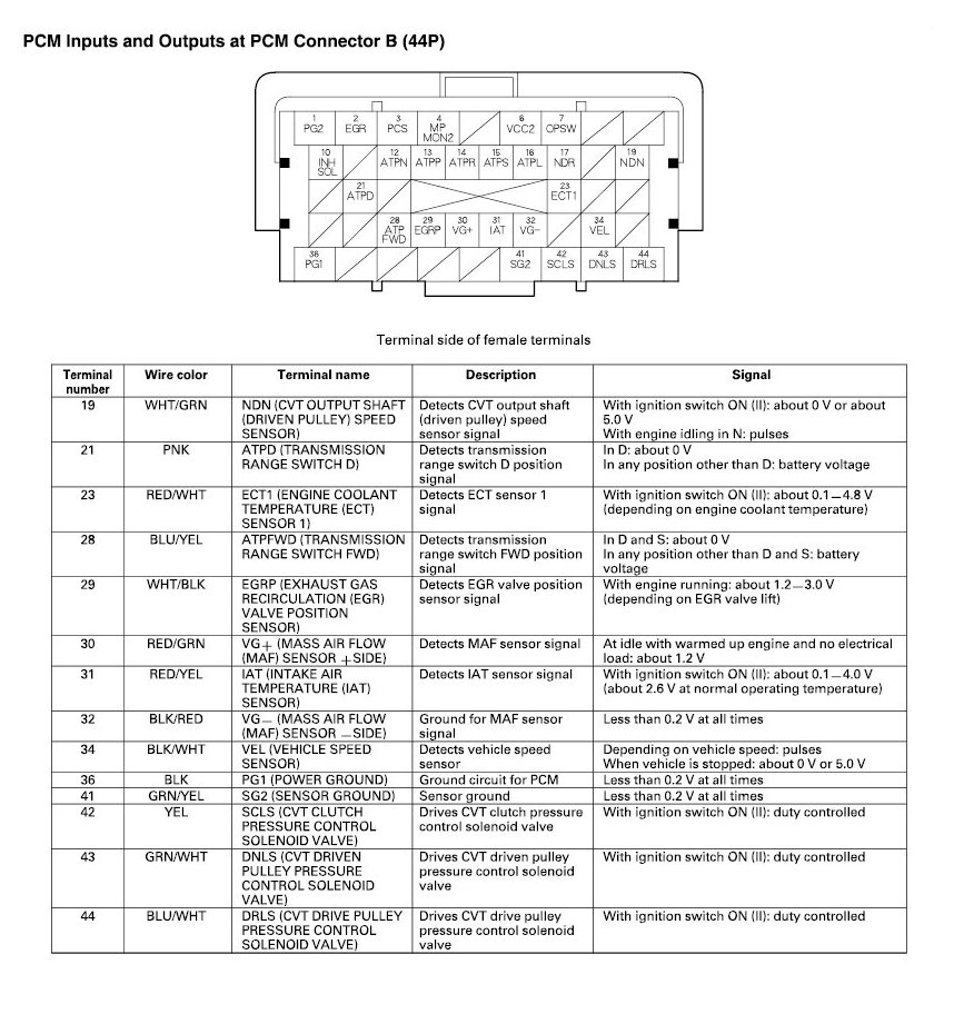 PCM Inputs And Outputs At Connector B