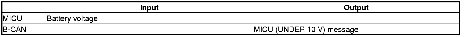 When any of the data from the B-CAN circuit cannot be received within a specified time, or an unusual combination of data is recognized, the MICU moves to the software fail-safe mode. The data that was not received is forced to a pre-programmed value.