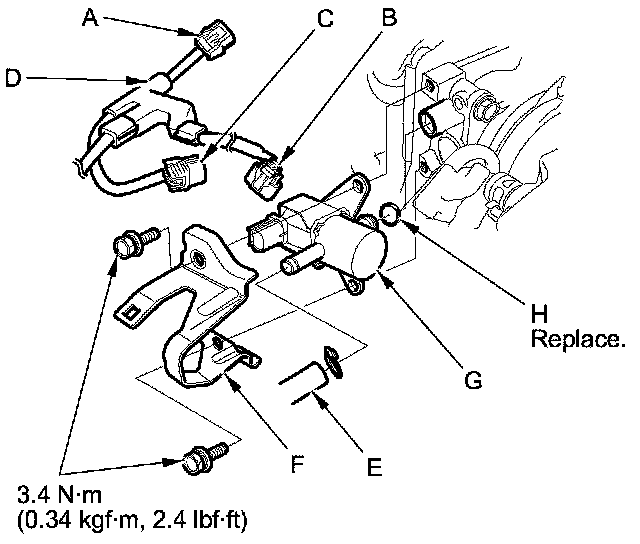3. Install the parts in the reverse order of removal with a new O-ring (H).