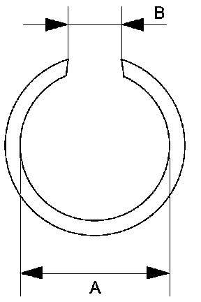13. Check that the snap ring inside diameter (A) is 143.5 mm (5.65 in) or more, and also check that the snap ring end gap (B) is 8.7 mm (0.34 in) or more.