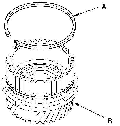 34. Install the sealing ring (A) on a new secondary drive/park gear (B).
