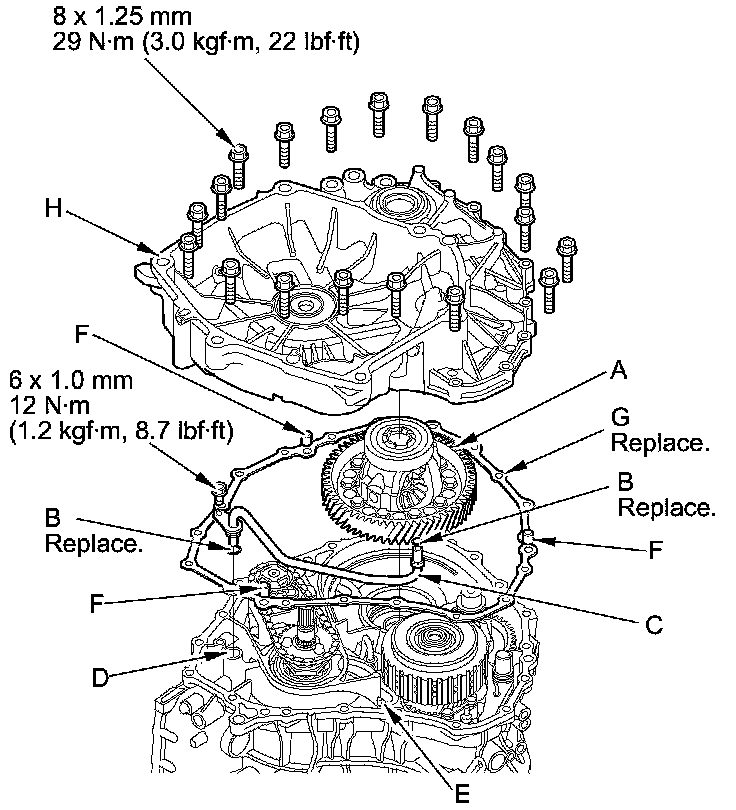 NOTE: When you reassemble the transmission, soak the start clutch assembly, the forward clutch assembly, and the reverse brake disks in Honda Genuine CVTF for at least 30 minutes prior to installation.