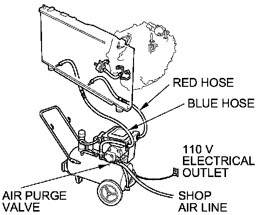 7. Connect a shop air hose (regulated to 100 to 125 psi) to the air purge valve.