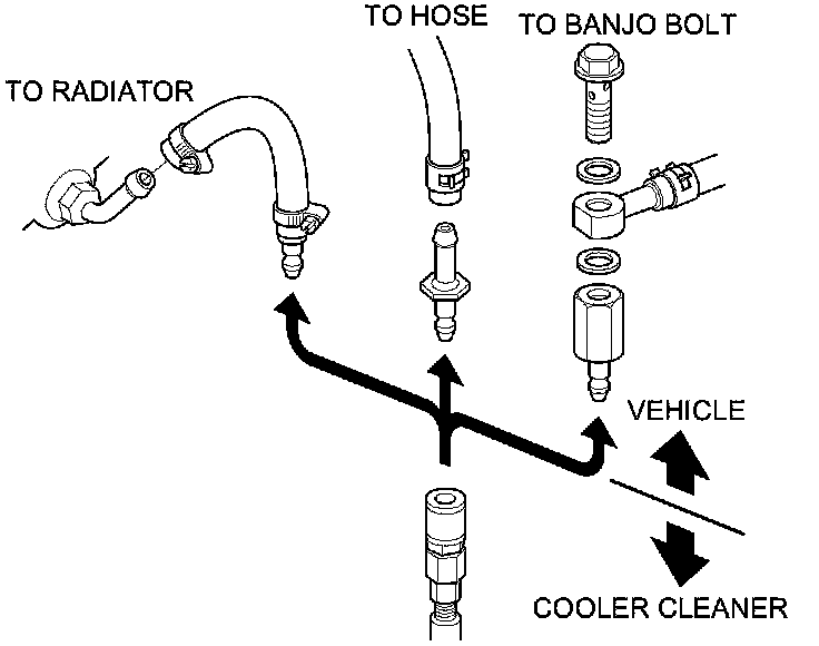4. Select the appropriate pair of fittings, and attach them to the radiator, to the hoses, or to the banjo bolts for flow through the ATF cooler cleaner.